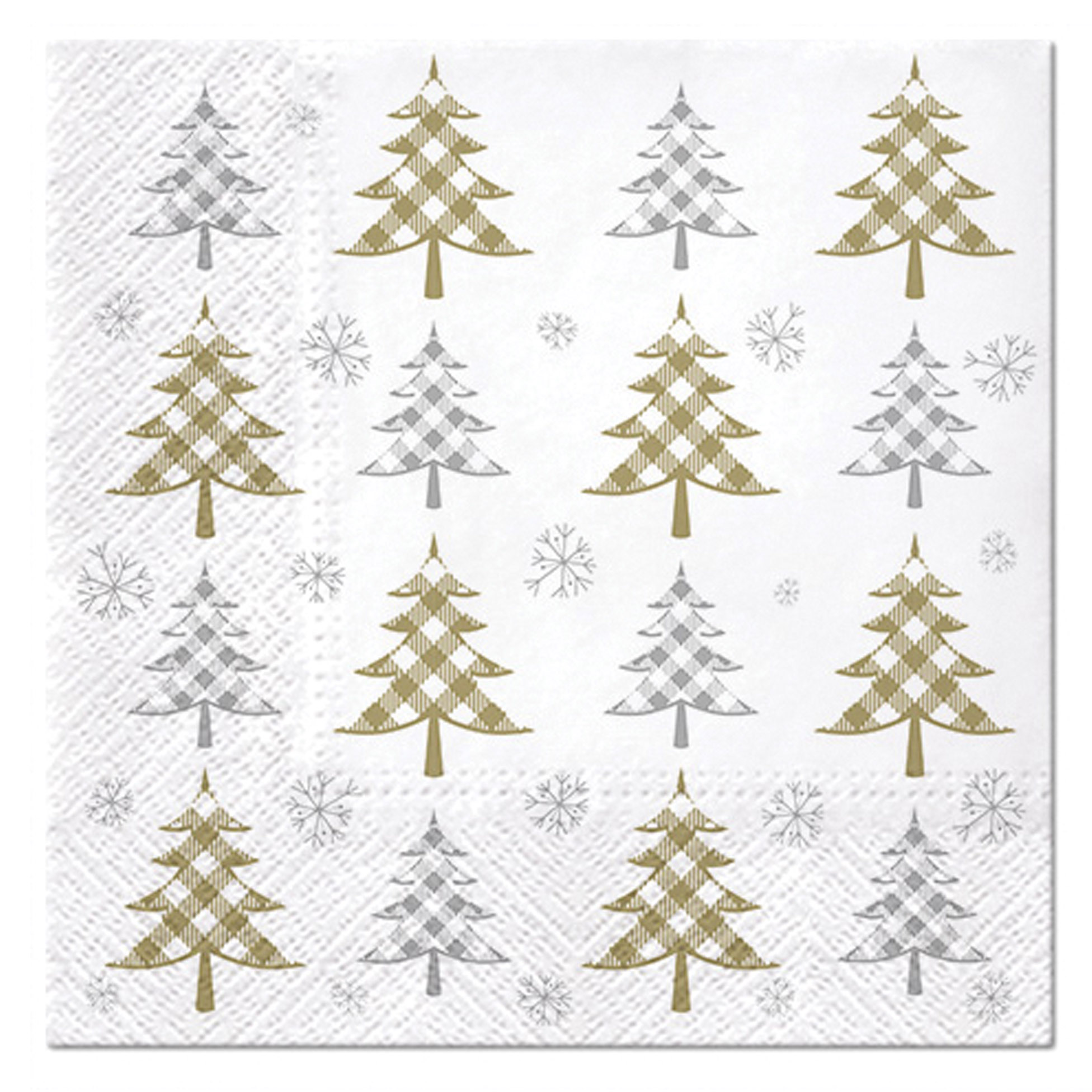 Apportez une touche festive et élégante à votre table avec ce lot de 20 serviettes en papier décorées de sapins stylisés dorés et argentés, accompagnés de flocons délicats. Un design sobre et raffiné, parfait pour les repas de Noël, les réveillons ou les décorations de table hivernales.