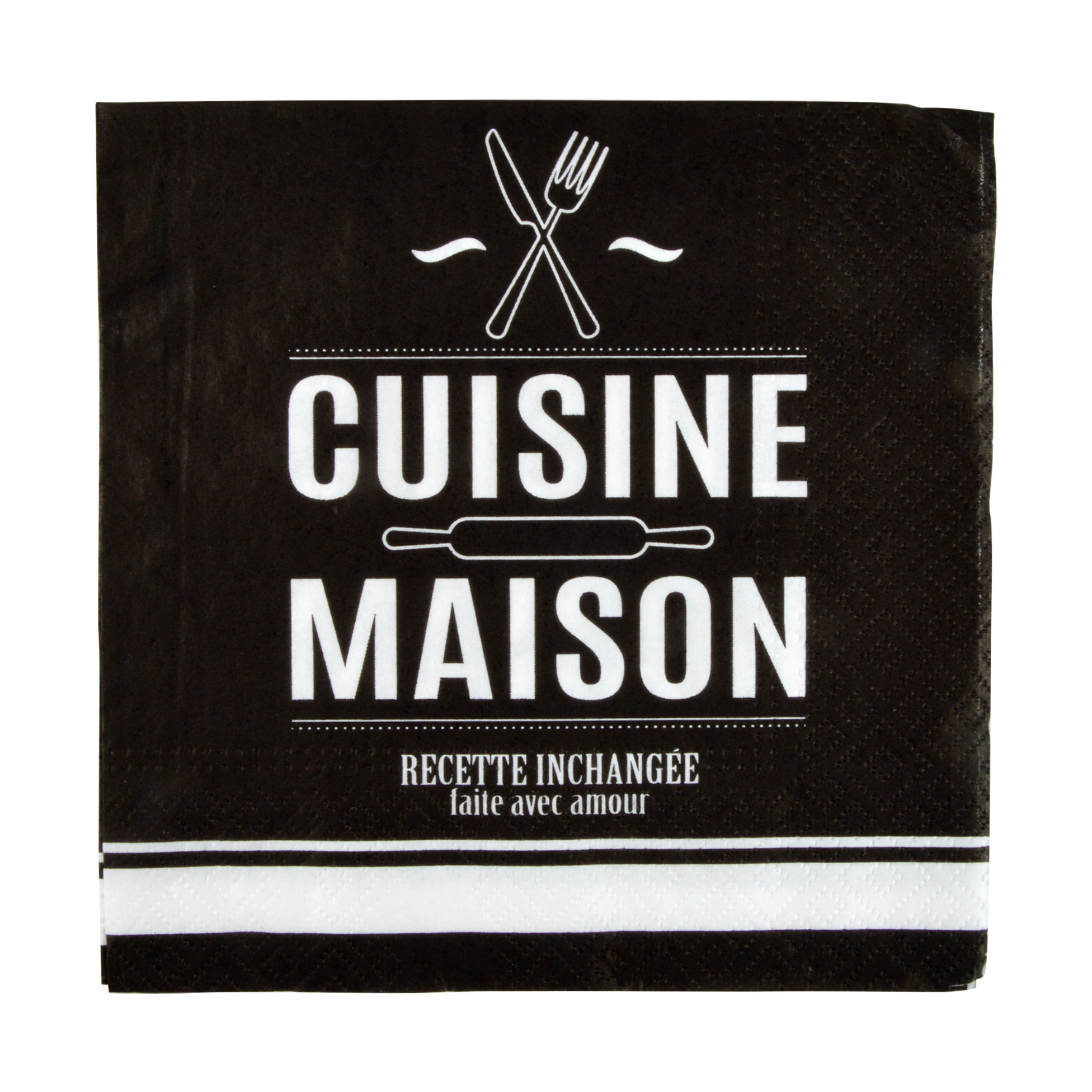 Ajoutez une touche moderne et élégante à votre table avec ce lot de 20 serviettes en papier noires décorées de l’inscription “CUISINE MAISON – Recette échangée, faite avec amour”, accompagnée de symboles de cuisine. Un design chic et authentique, parfait pour les repas du quotidien comme pour les réceptions.