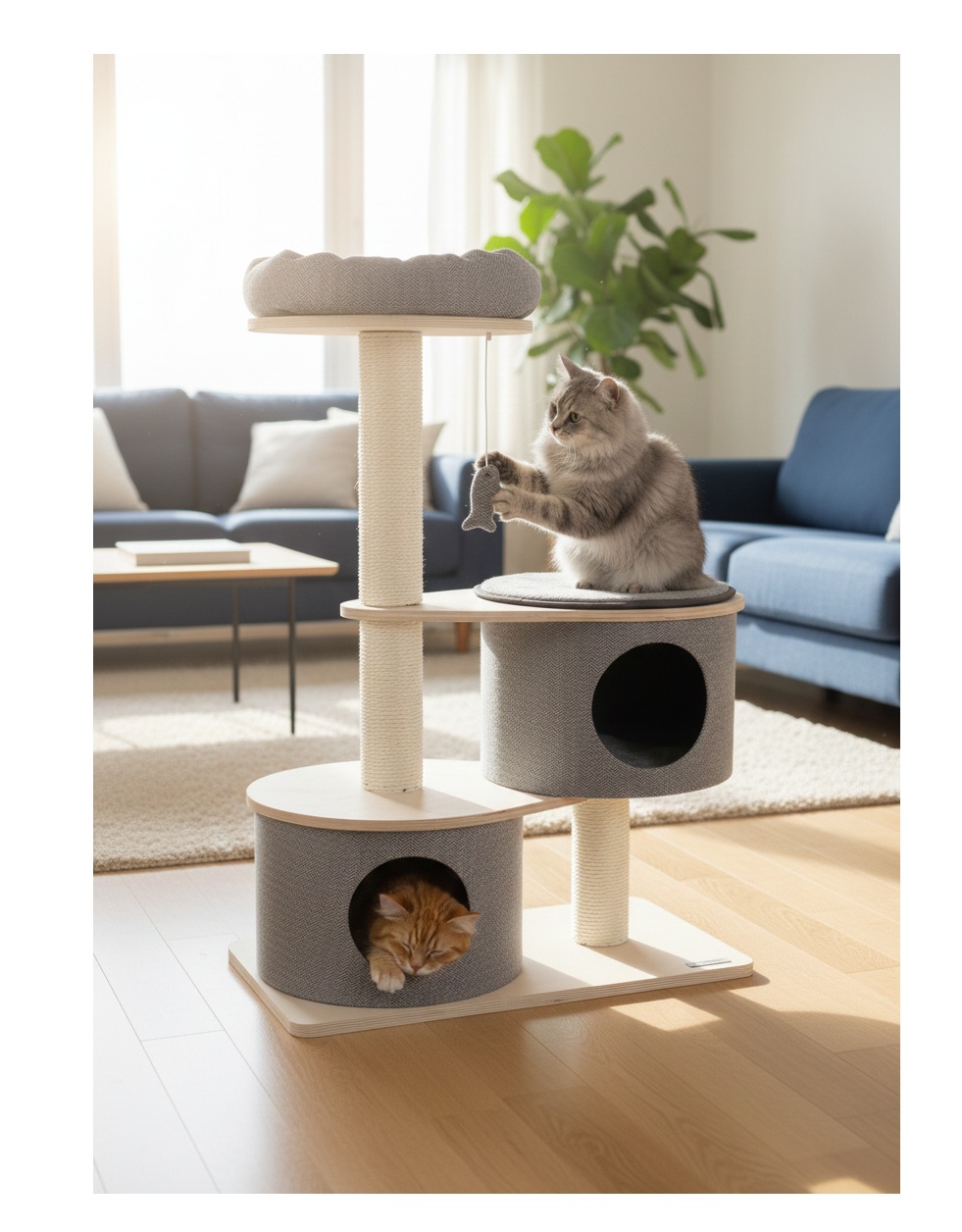 Un arbre à chat complet, stable et confortable, adapté aux chats de toutes tailles pour un usage quotidien.