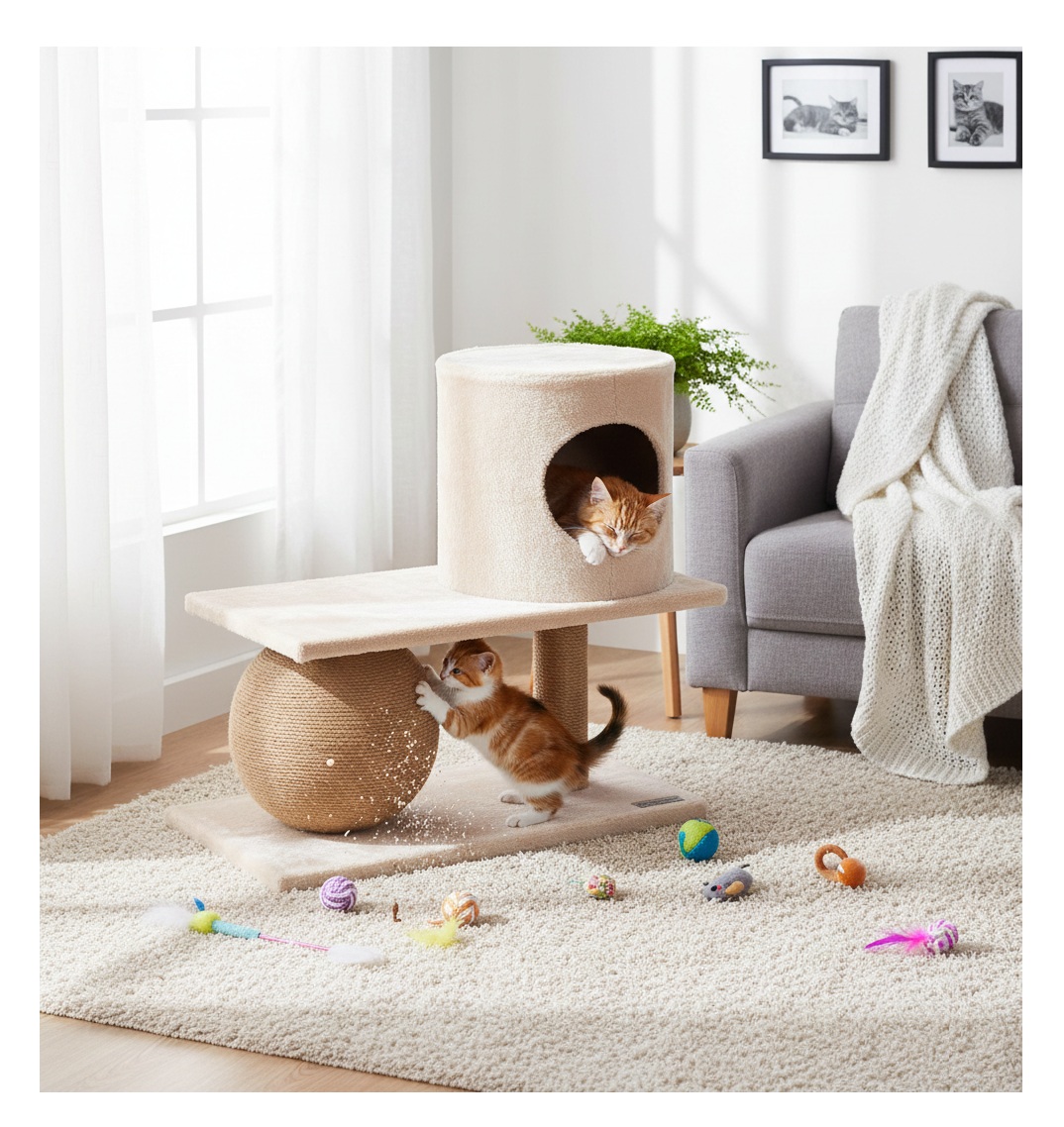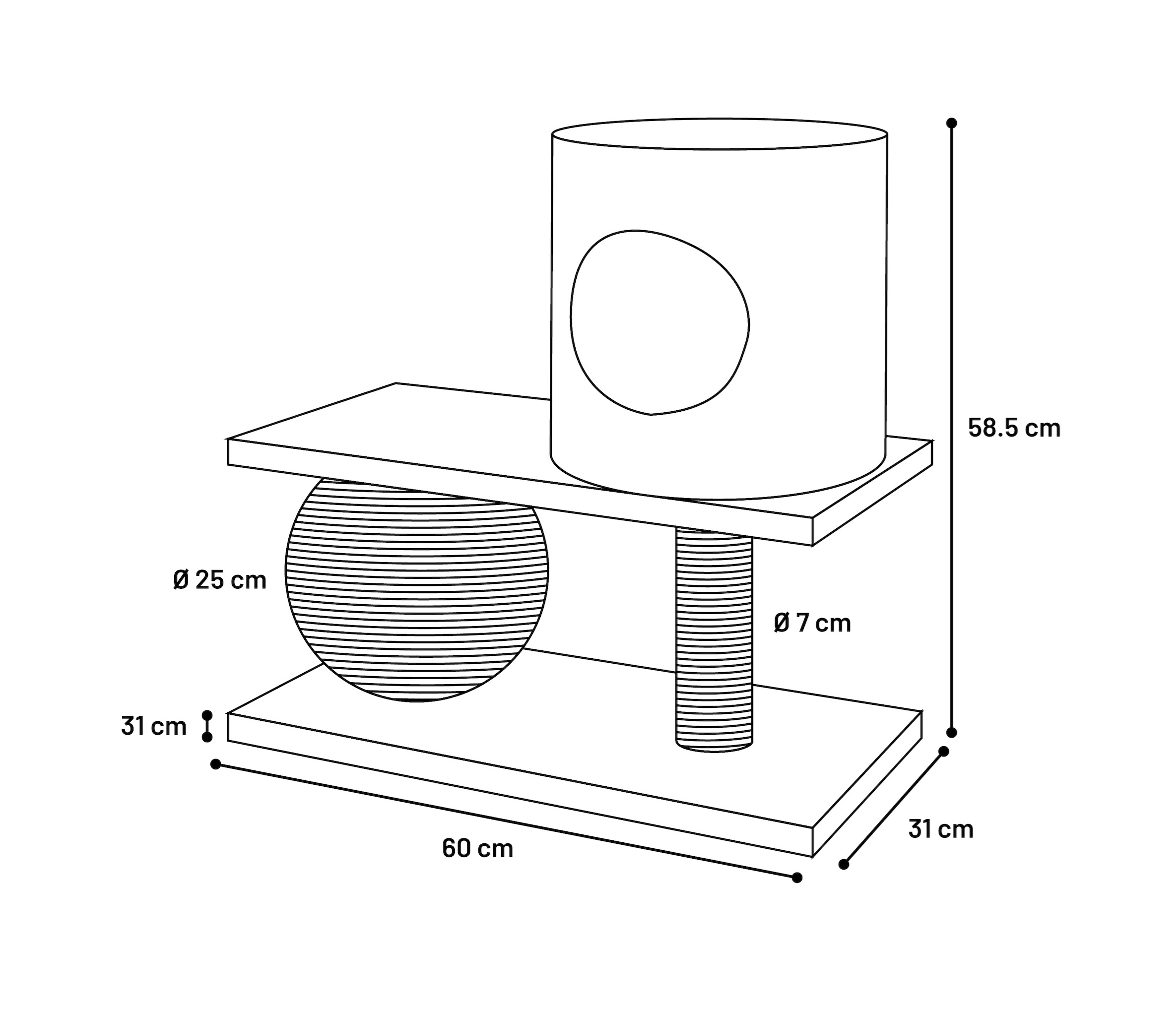 Les poteaux à griffer en corde de jute favorisent l’entretien naturel des griffes et aident à protéger vos meubles. La balle intégrée stimule l’instinct joueur et encourage l’activité quotidienne. Sa base épaisse et stable assure une excellente tenue au sol, même lors des phases de jeu plus dynamiques.