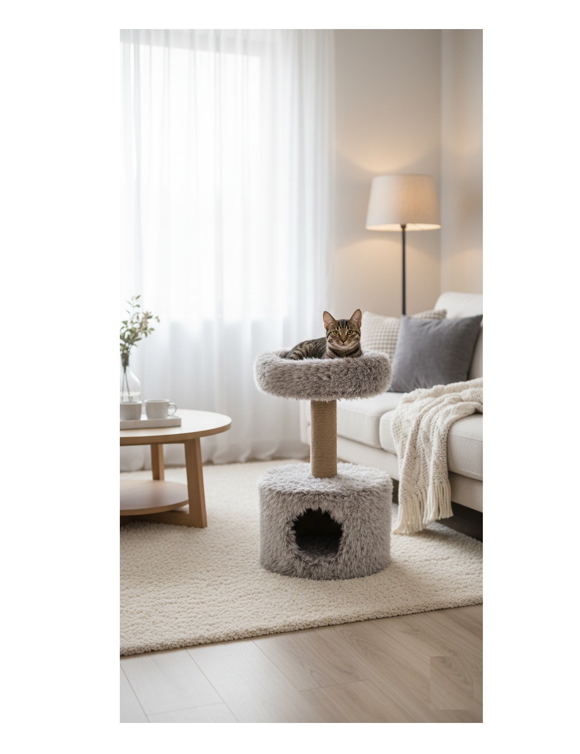 La cachette et la plateforme sont entièrement recouvertes à l’intérieur et sur le fond pour un maximum de douceur. Grâce à sa base stable et à son format compact, ce griffoir convient parfaitement aux chats de toutes tailles et s’adapte aux petits espaces. Un accessoire indispensable pour combiner jeu, grattage et repos au quotidien.