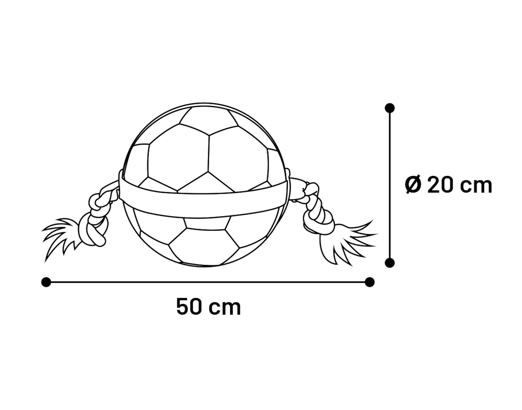 Caractéristiques : • Balle de football avec corde intégrée • Dimensions : 50 x 20 x 20 cm • Matière : caoutchouc résistant • Rebond élevé pour plus d’interaction • Corde pratique pour lancer et tirer • Convient à toutes les tailles de chiens • Utilisation : extérieur • Idéale pour jeux de rapport et traction • Coloris : blanc et noir