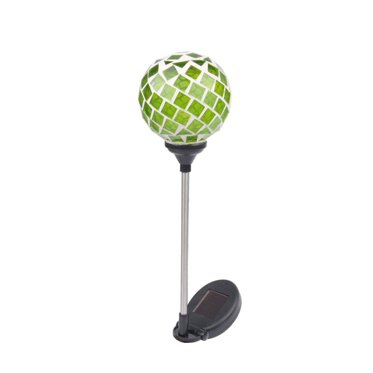 Lampe solaire à led en forme de boule et decoration mosaique à planter La lampe se recharge la journée, et s'allume automatiquement la nuit. Elle se plante n'importe où. Idéal pour tous les extérieurs. Rechargement grâce au panneau solaire pour une autonomie de 8h. Dimensions : - H 62 m x 9 cm