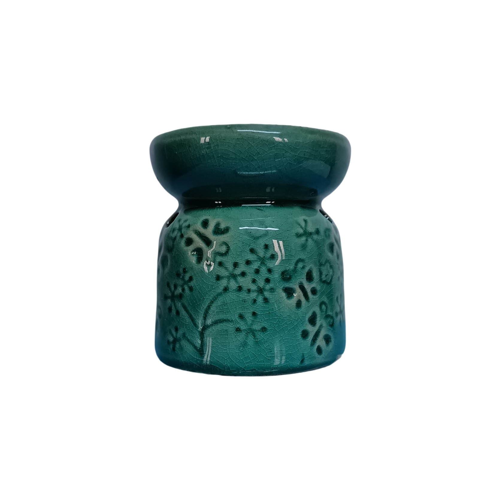 Apportez une touche de poésie et de sérénité à votre intérieur avec ce brûle-parfum Papillons en céramique verte.
