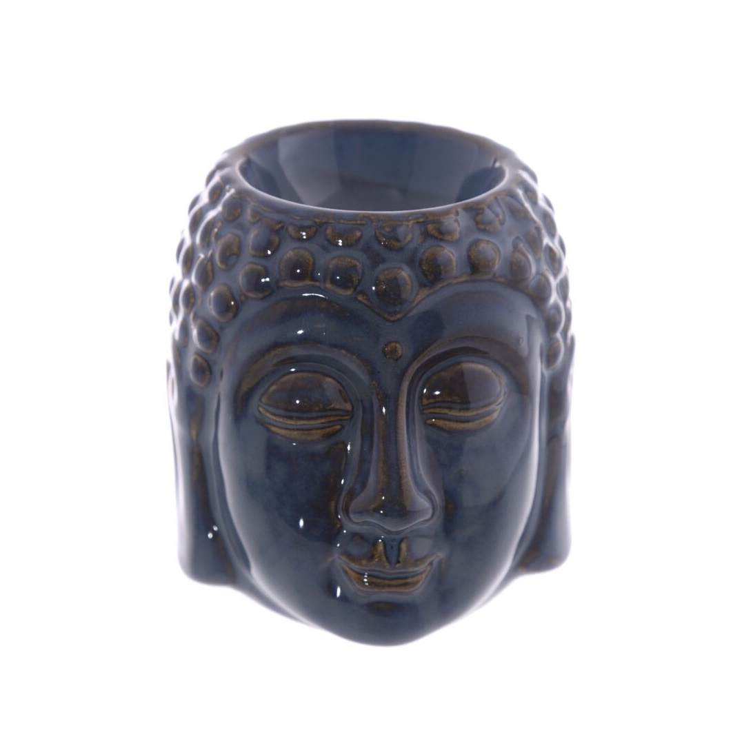Créez une ambiance zen et chaleureuse dans votre intérieur avec ce brûle-parfum en forme de tête de Bouddha bleu.