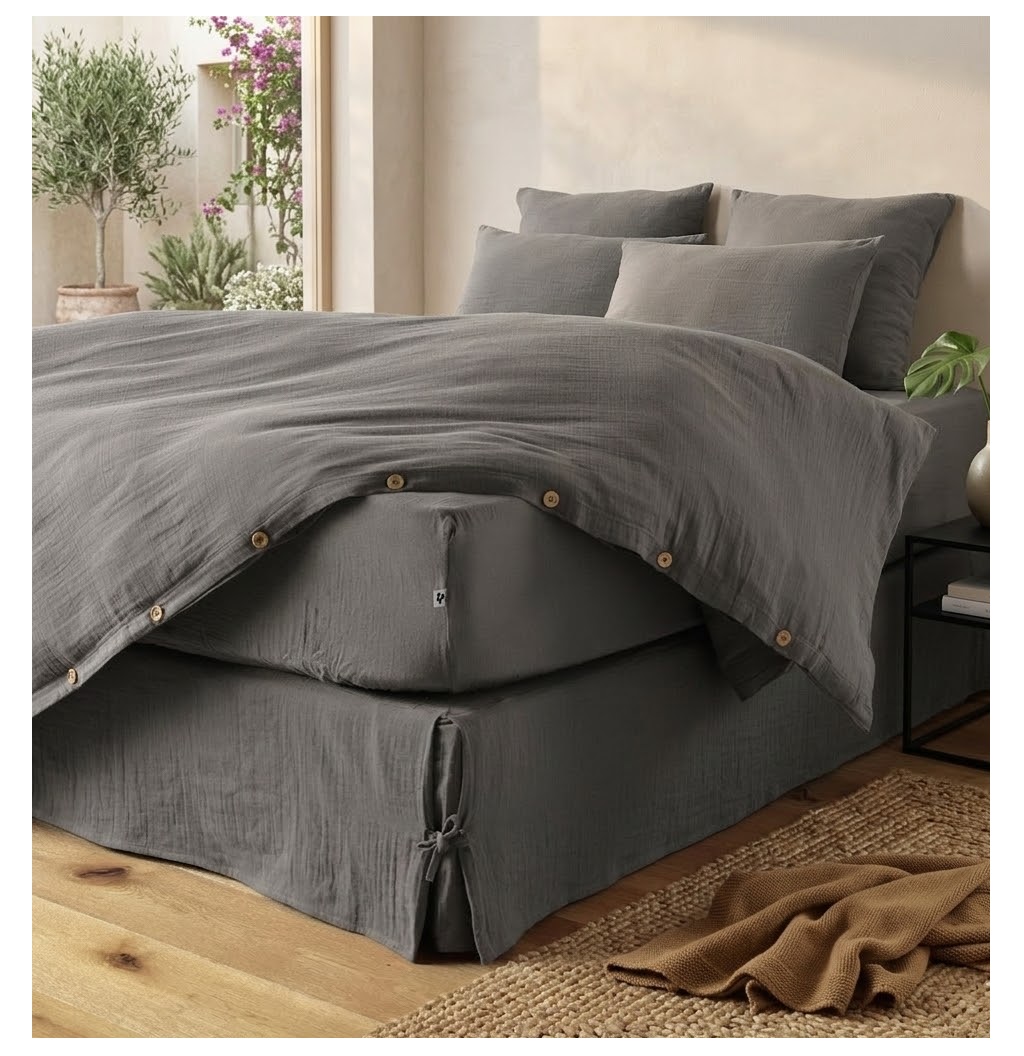 Apportez une finition élégante à votre literie avec le cache sommier Gaia en gaze de coton.