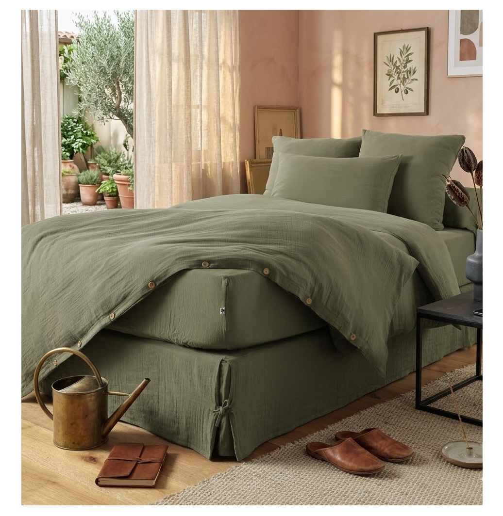 Cache sommier gaze de coton 180 x 200 cm Gaia Romarin