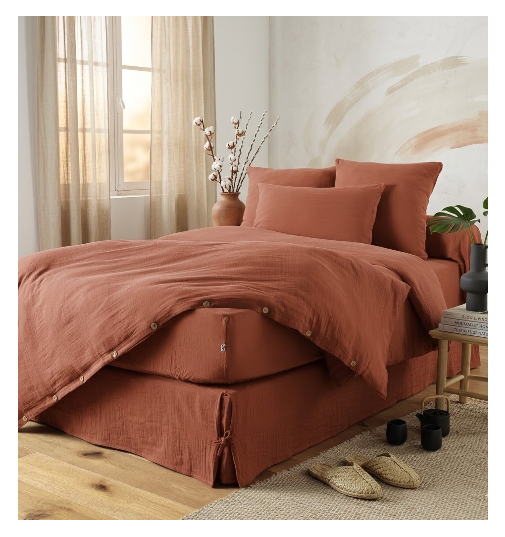 Cache sommier gaze de coton 90 x 190 cm Gaia Terracotta