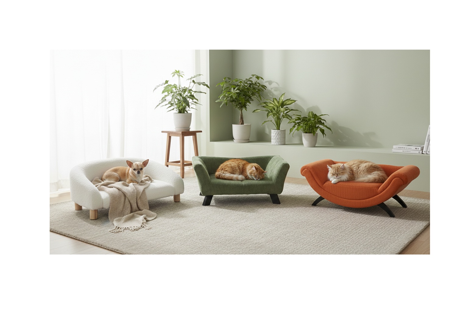 Ce sofa est fabriqué avec une structure solide en bois et un revêtement textile doux (220 g/m²) agréable au toucher. Son assise moelleuse, rembourrée en mousse PU (polyuréthane), assure un excellent confort pour les siestes et les temps de repos. Grâce à ses accoudoirs et son dossier enveloppants, votre chat ou petit chien pourra s’y installer en toute sécurité, se lover ou simplement observer son environnement.