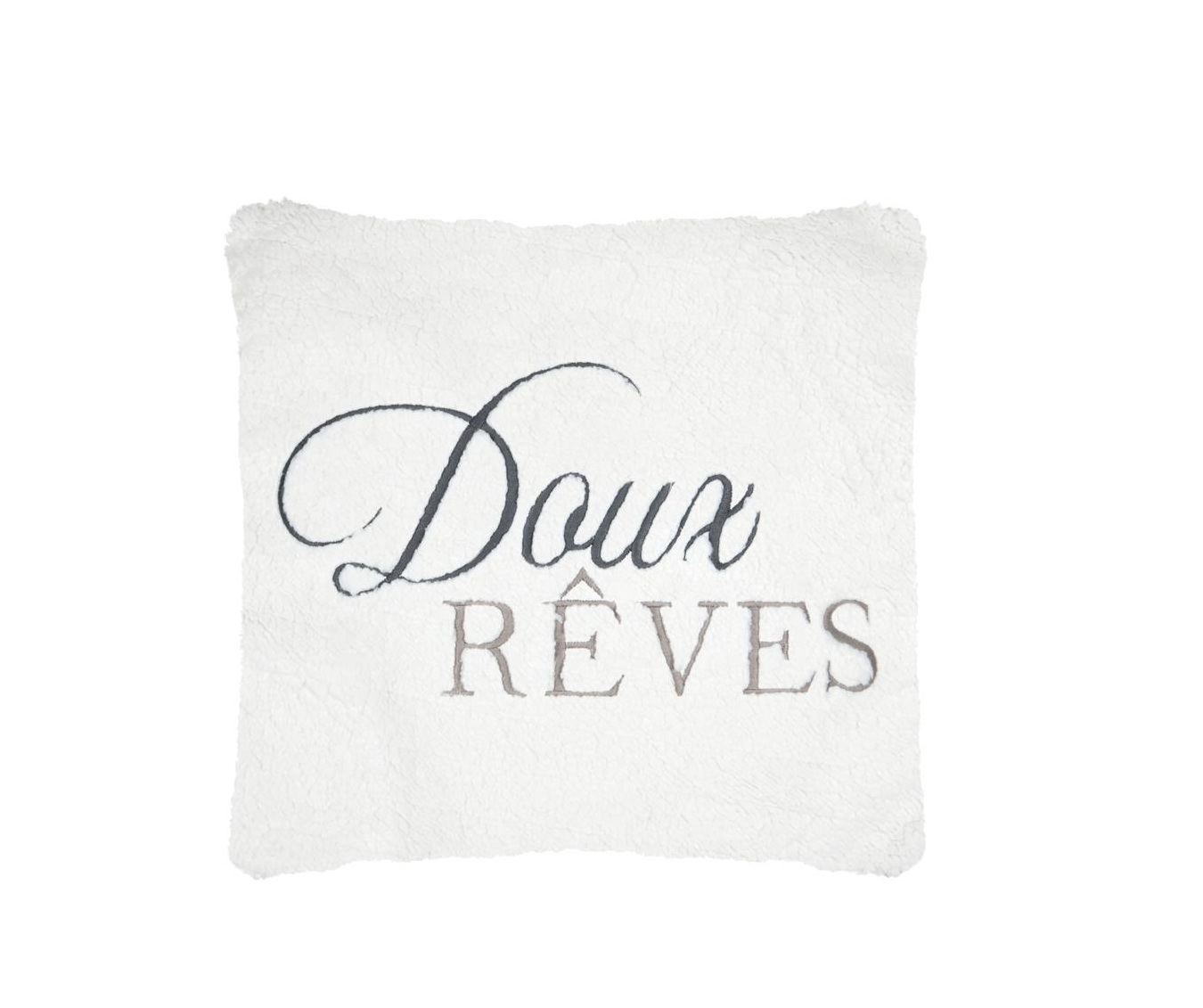 Créez une ambiance cosy et raffinée avec ce coussin en polyester orné de l’inscription élégante “Doux Rêves”. Idéal pour une chambre ou un coin détente, il invite à la relaxation et au confort.