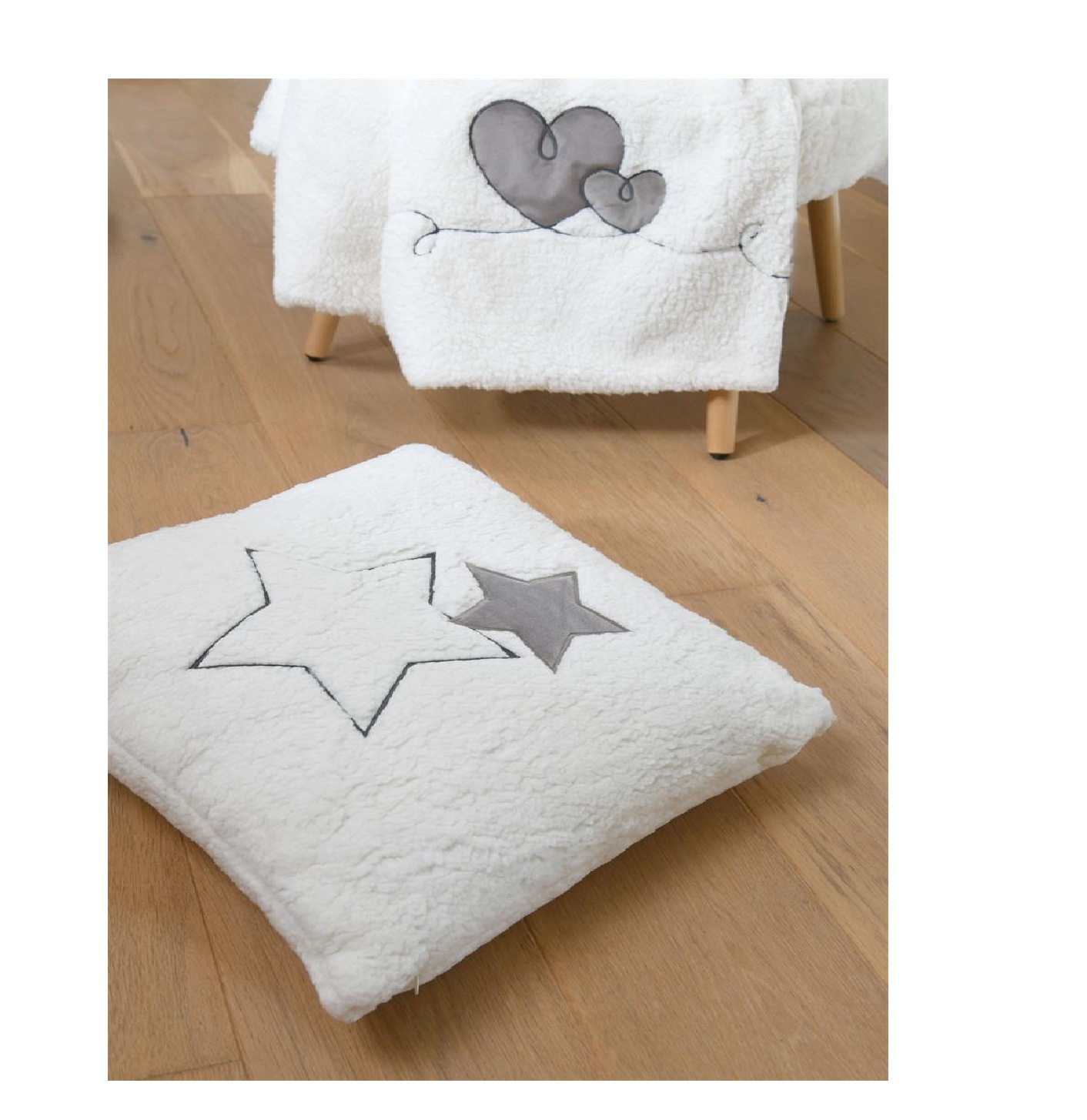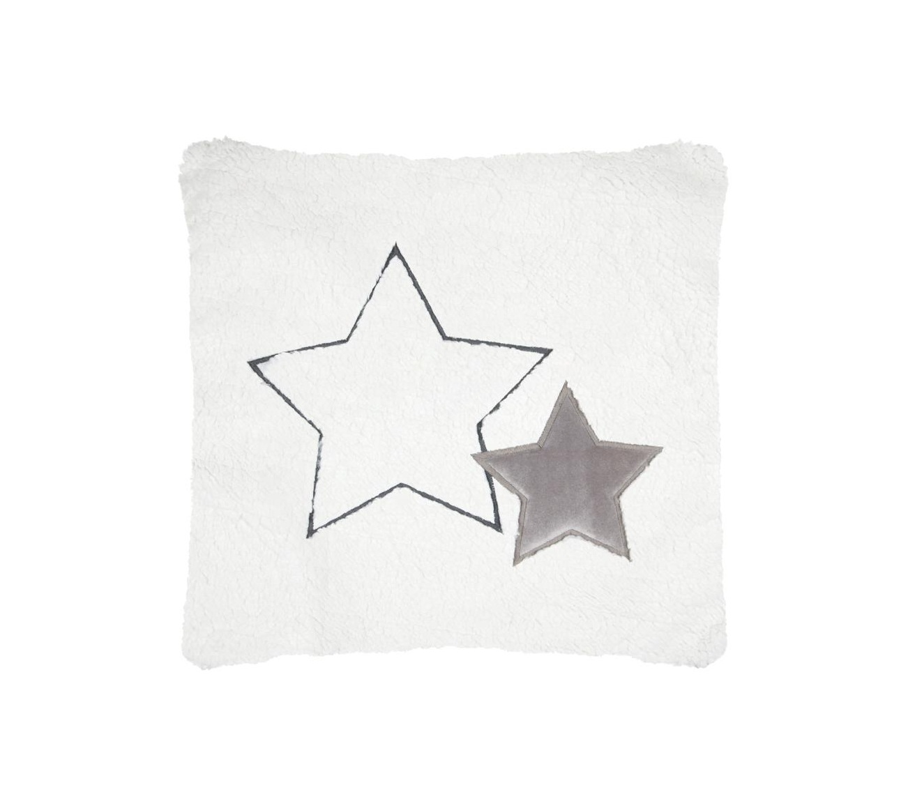 Apportez une touche douce et tendance à votre intérieur avec ce coussin en polyester à l’aspect cocooning. Son motif étoiles, l’une en contour noir et l’autre en velours gris appliqué, apporte un joli contraste moderne et chaleureux.