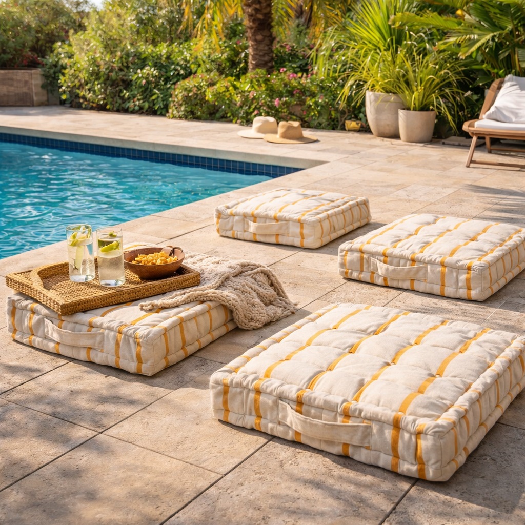 Disponible en plusieurs coloris, le coussin de sol St Trop s’intègre facilement à différents styles de décoration : bord de mer, bohème, naturel ou contemporain. Un accessoire à la fois décoratif et fonctionnel, pensé pour créer une atmosphère détendue et accueillante.
