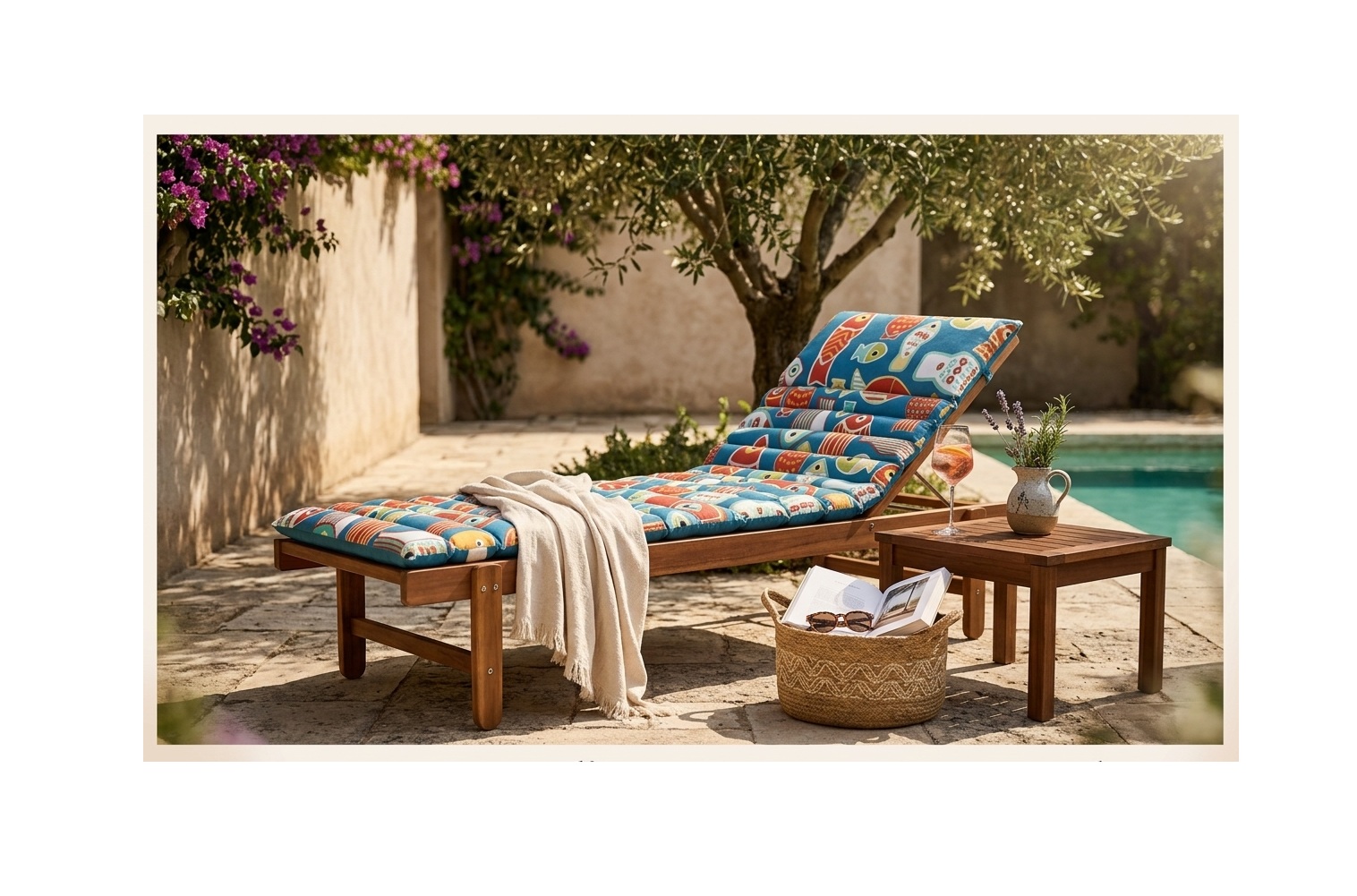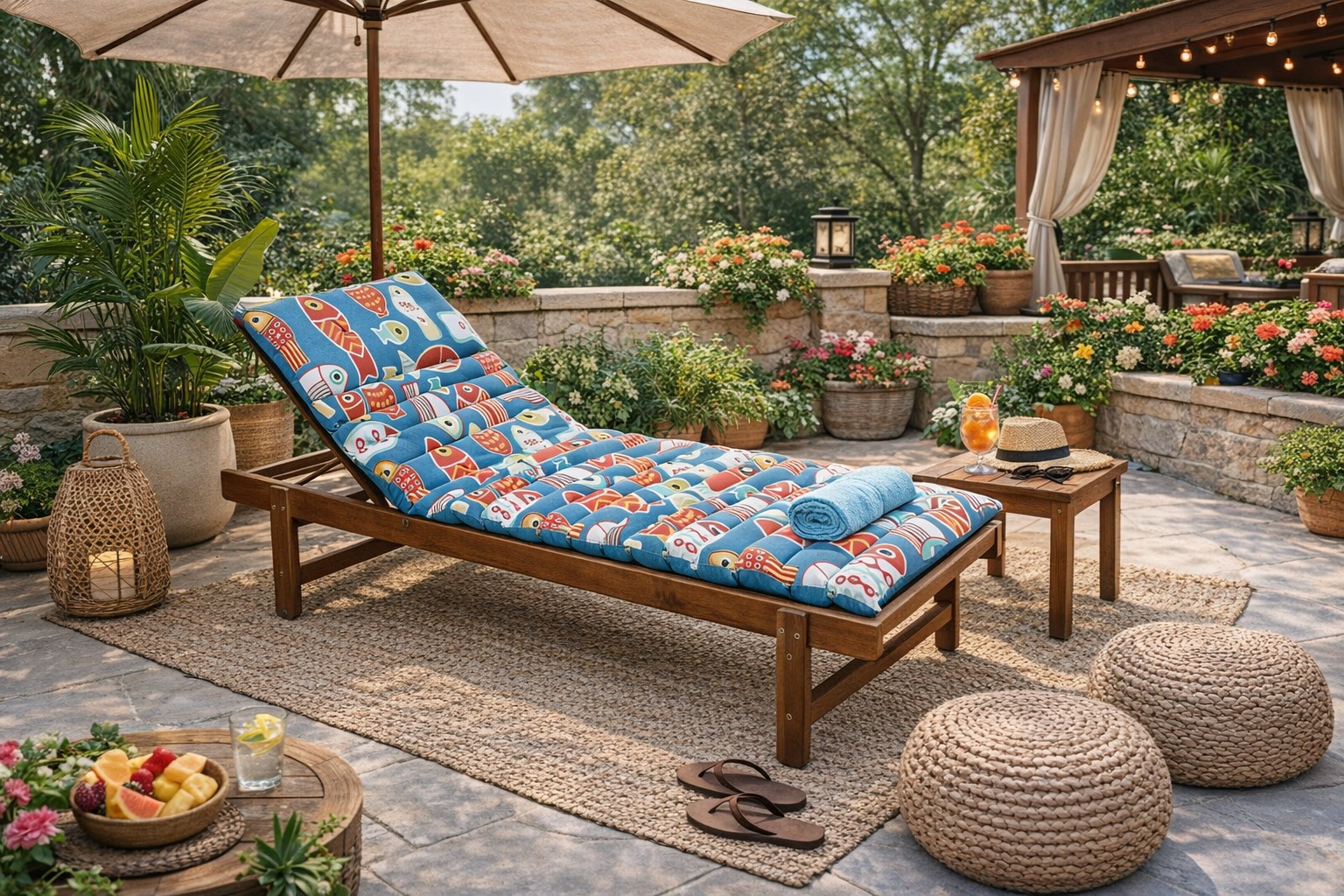 Apportez une touche colorée et originale à votre mobilier de jardin avec ce matelas de bain de soleil au motif poissons ludique et estival. Ses couleurs vives et son design graphique créent immédiatement une ambiance de vacances, parfaite pour profiter du soleil au bord de la piscine, sur la terrasse ou dans le jardin.