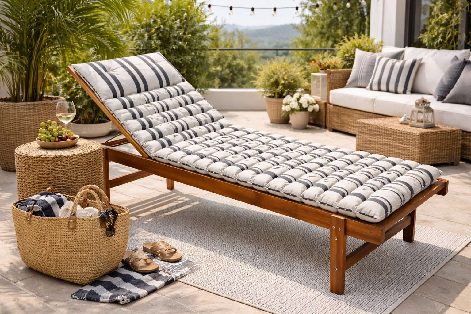 Dimensions : largeur 60 × longueur 180 cm Matière : housse 100 % coton Utilisation : idéal pour bain de soleil, transat ou chaise longue Confort : matelas matelassé pour un maintien agréable