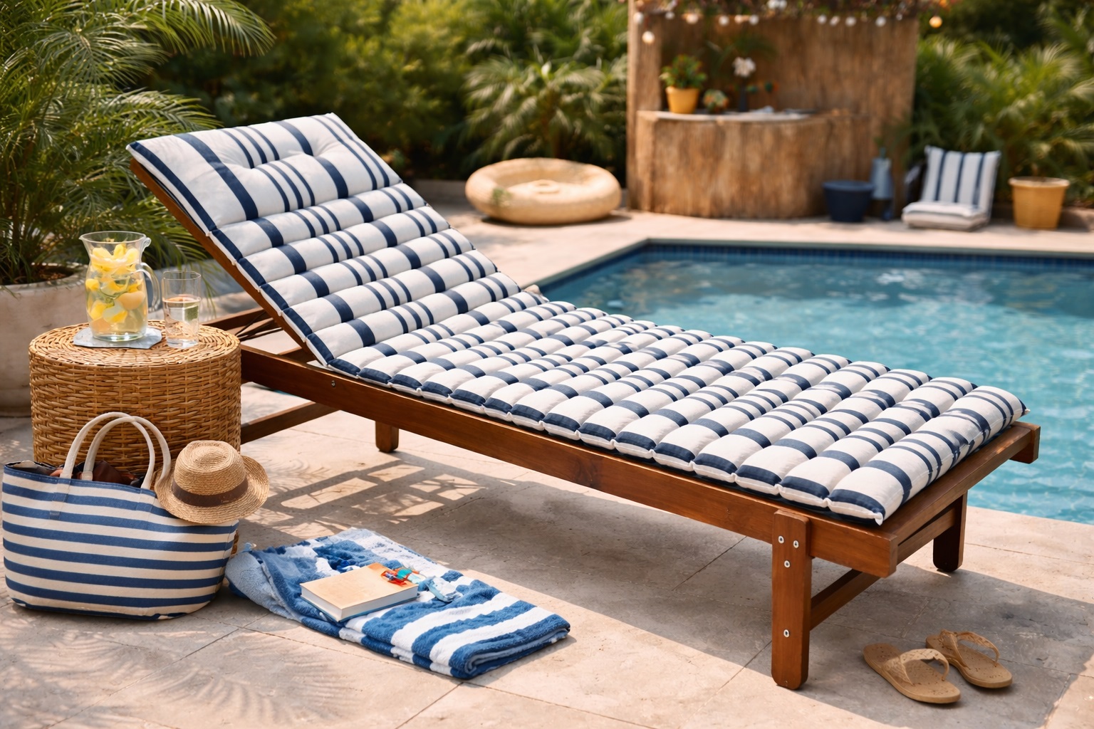 Dimensions : largeur 60 × longueur 180 cm Matière : housse 100 % coton Utilisation : idéal pour bain de soleil, transat ou chaise longue Confort : matelas matelassé pour un maintien agréable