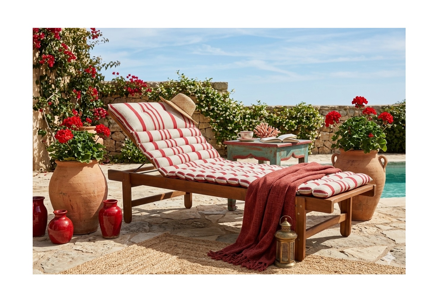 Dimensions : largeur 60 × longueur 180 cm Matière : housse 100 % coton Utilisation : idéal pour bain de soleil, transat ou chaise longue Confort : matelas matelassé pour un maintien agréable