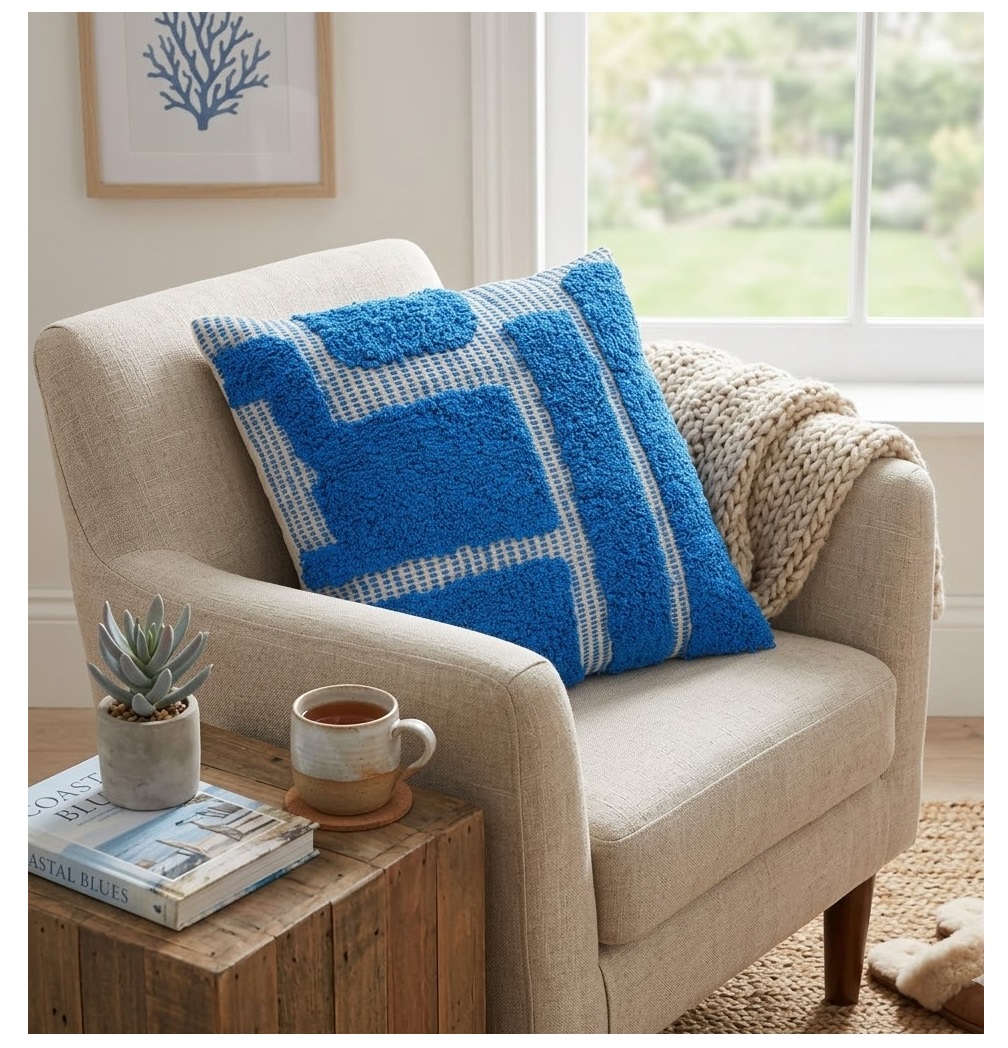 Son motif tufté élégant au recto et son verso uni créent un style raffiné et dynamique.