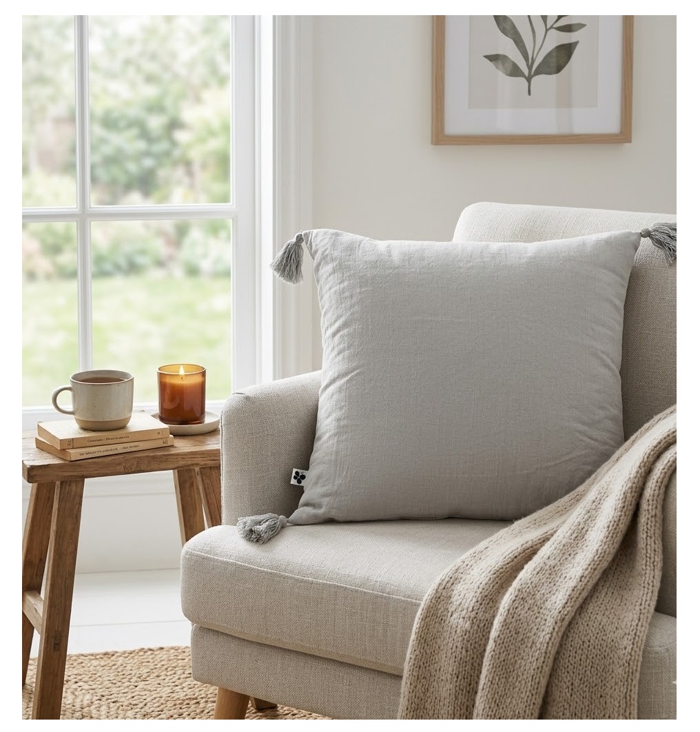 Son coloris élégant et ses quatre pompons décoratifs apportent une touche moderne et chaleureuse à votre canapé ou lit.