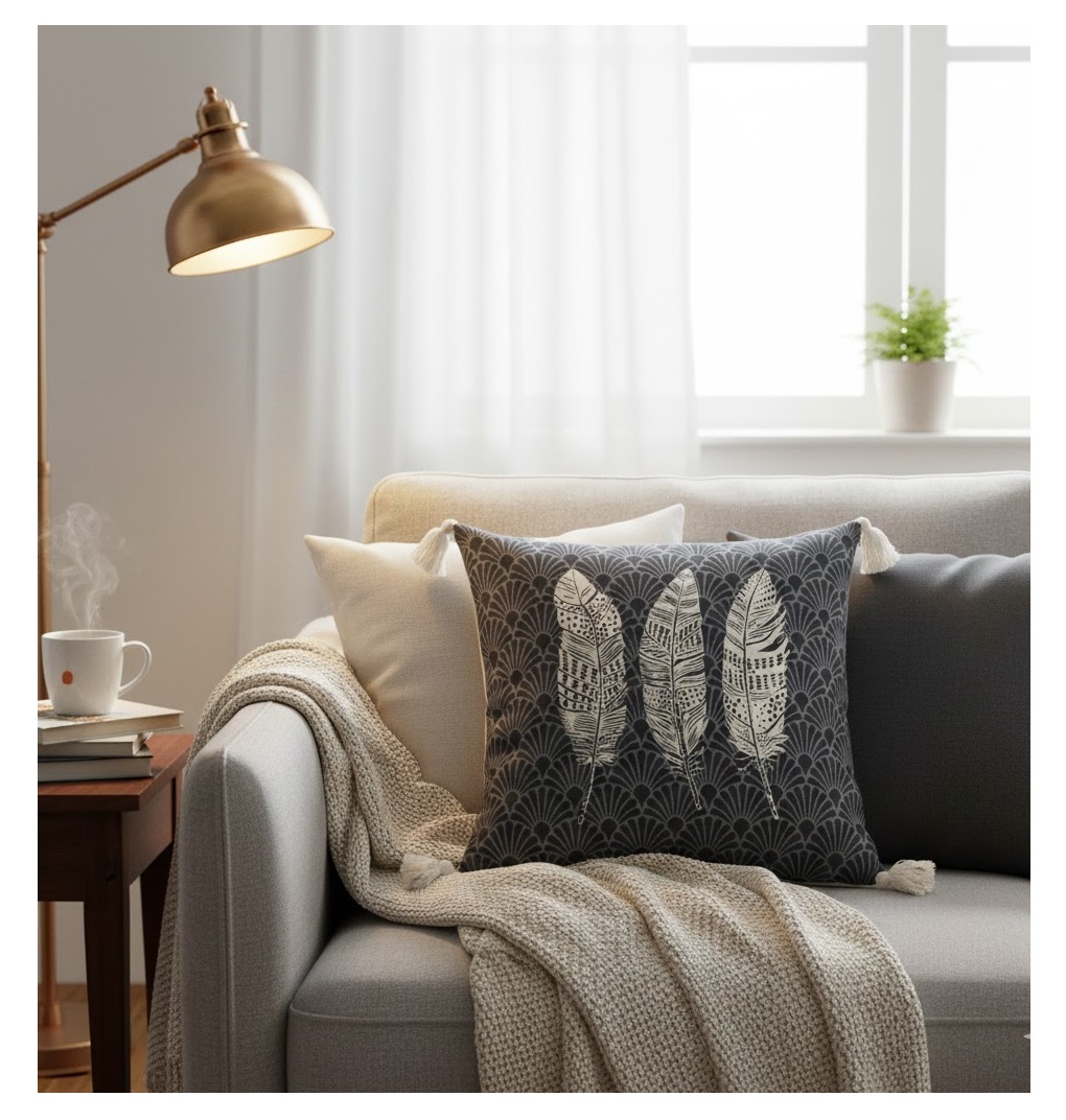 Avec son format 40 x 40 cm, il est idéal pour habiller un canapé, un fauteuil ou un lit. Son enveloppe en 100 % coton offre un toucher naturel et agréable, tandis que son intérieur en fibres diverses garantit un confort moelleux au quotidien.