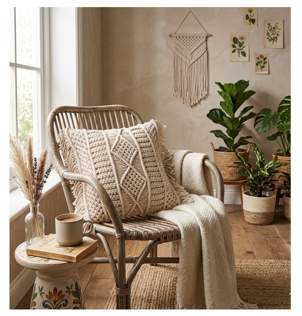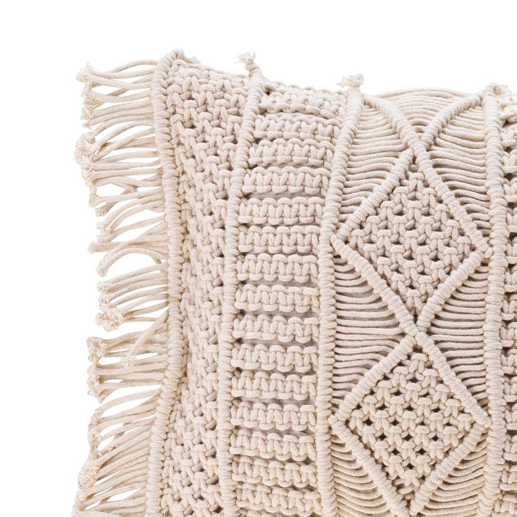 Apportez une touche bohème et authentique à votre décoration avec le coussin Macralina à franges en macramé.