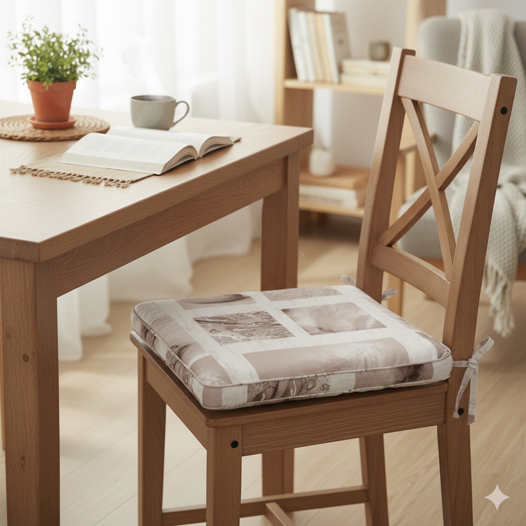 ✔️ Dimensions : 43 x 37 cm – Épaisseur : 5 cm ✔️ Coloris : Blanc et gris clair, avec imprimé photo doux et moderne ✔️ Matière : Polyester avec garnissage moelleux ✔️ Fixation : Liens à nouer pour un maintien optimal sur la chaise ✔️ Utilisation : Idéale pour salle à manger, cuisine ou véranda