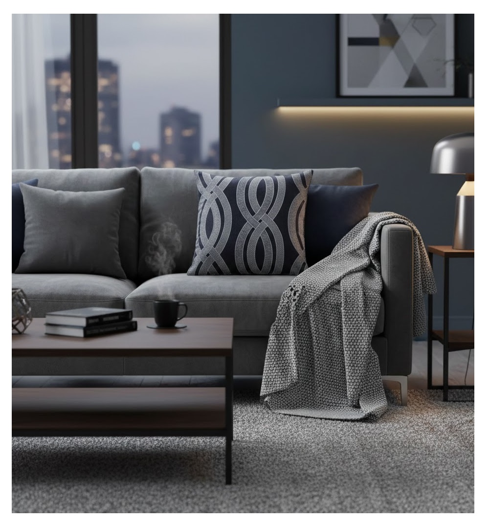 Apportez une touche moderne et graphique à votre décoration avec le coussin Jacquard Miriade. Son motif de rubans ondulés en jacquard sur fond uni crée un effet élégant et contemporain, idéal pour sublimer un canapé, un fauteuil ou un lit.