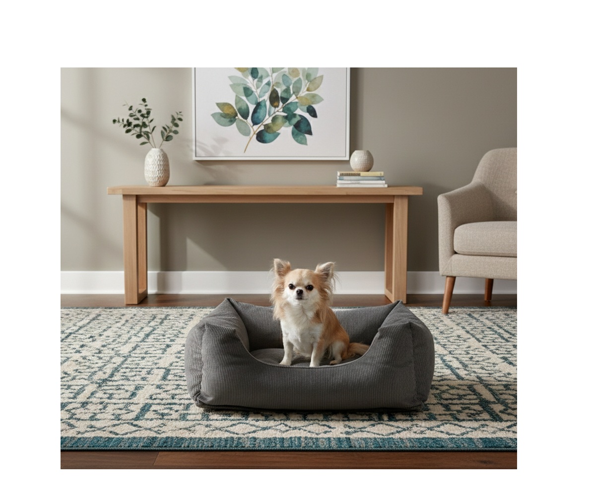 Offrez à votre compagnon un espace de repos douillet avec ce panier rectangulaire en tissu côtelé, au style moderne et épuré. Son rembourrage en fibres polyester et mousse assure un confort optimal pour les siestes. La housse amovible avec fermeture éclair permet un lavage facile en machine à 30°C. Fond antidérapant pour une stabilité parfaite.