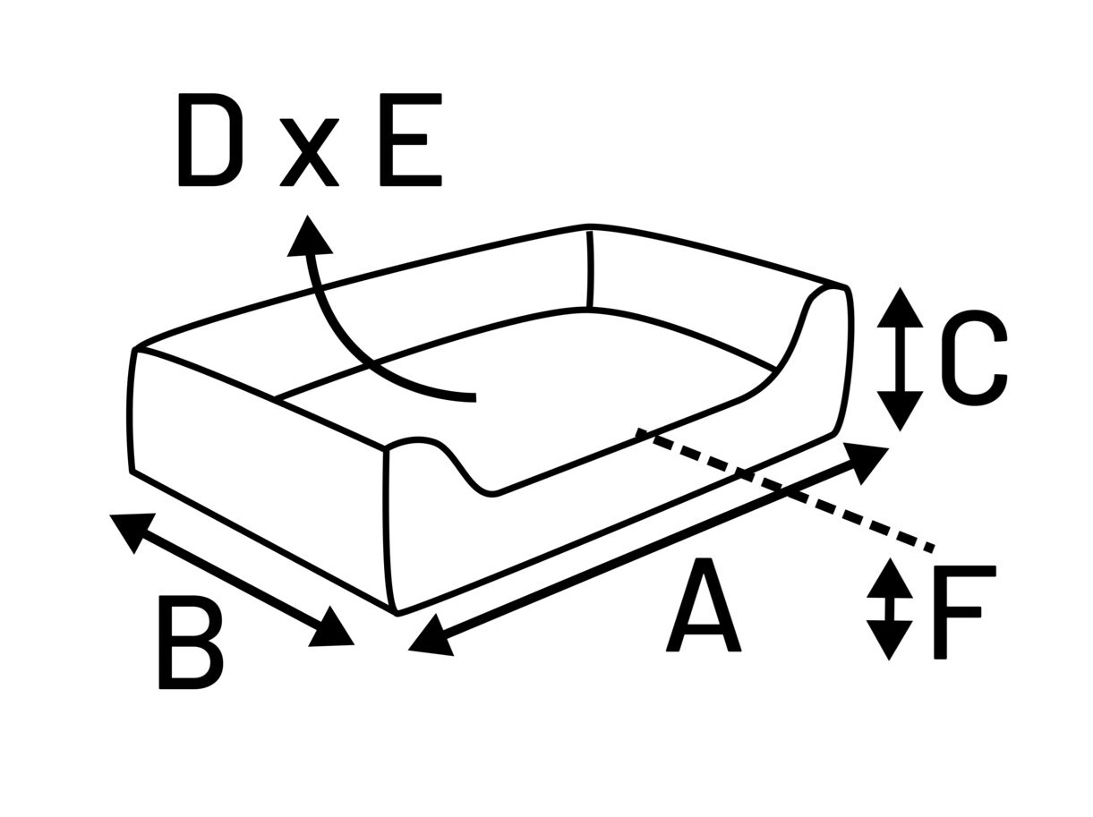 • Taille M : A 80 x B 67 x C 22 cm (intérieur D 46 x E 30 x F 15 cm)