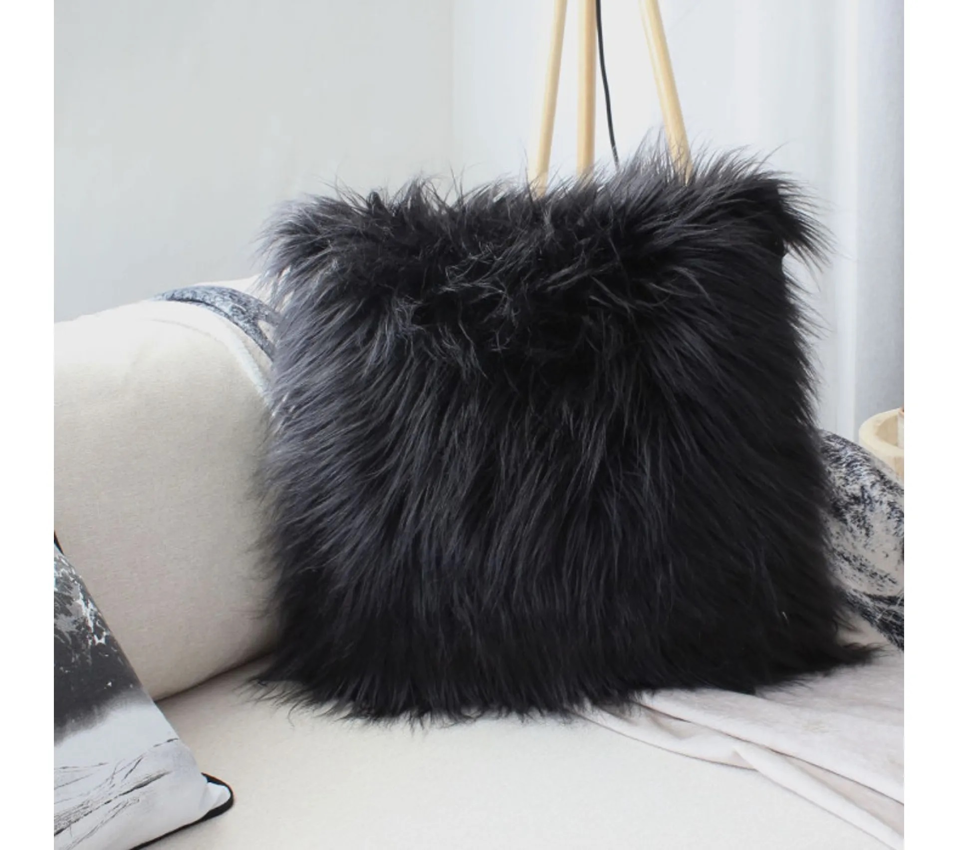 Coussin a poil 45 x 45 cm Epice noir