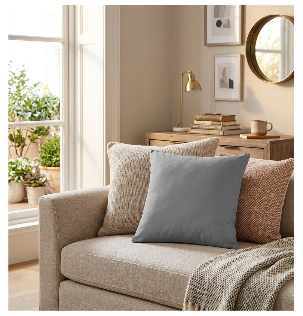 • Dimension : 40 x 40 cm • Couleur : gris souris élégant • Enveloppe : 100% polyester • Intérieur : fibres 100% polyester • Design uni moderne et polyvalent • Certification Oeko-Tex® • Confort moelleux au quotidien
