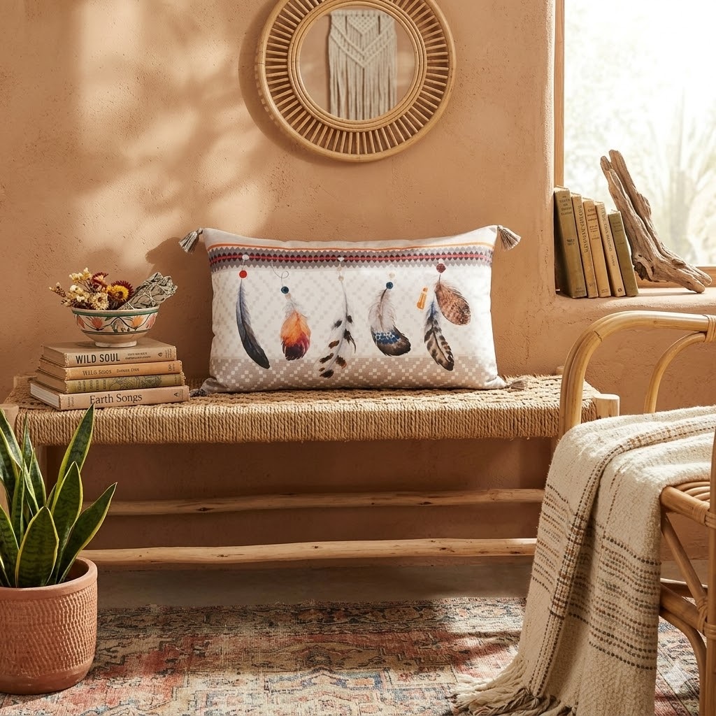 Sa couleur blanche et ses pompons décoratifs créent une ambiance cosy et raffinée.
