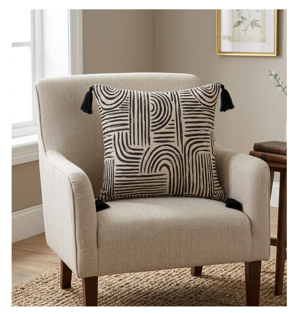 Son motif graphique et ses 4 pompons décoratifs ajoutent une touche moderne et chic à votre décoration.