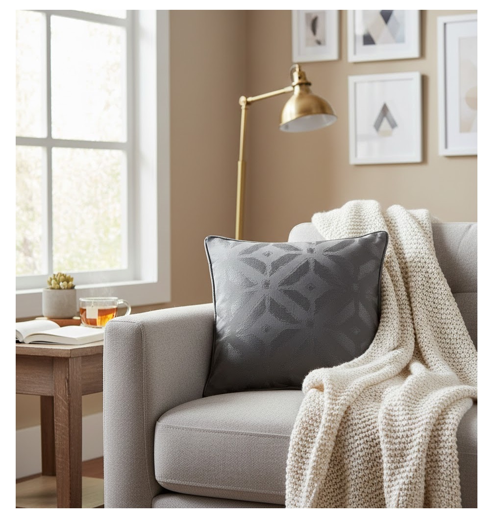 Sublimez votre décoration intérieure avec le coussin passepoil jacquard de la Collection Majestic. Son design chic et sobre, rehaussé de motifs géométriques modernes, apporte une touche d’élégance et de raffinement à votre salon, chambre ou espace détente. Il s’intègre parfaitement aussi bien dans une ambiance contemporaine que classique.