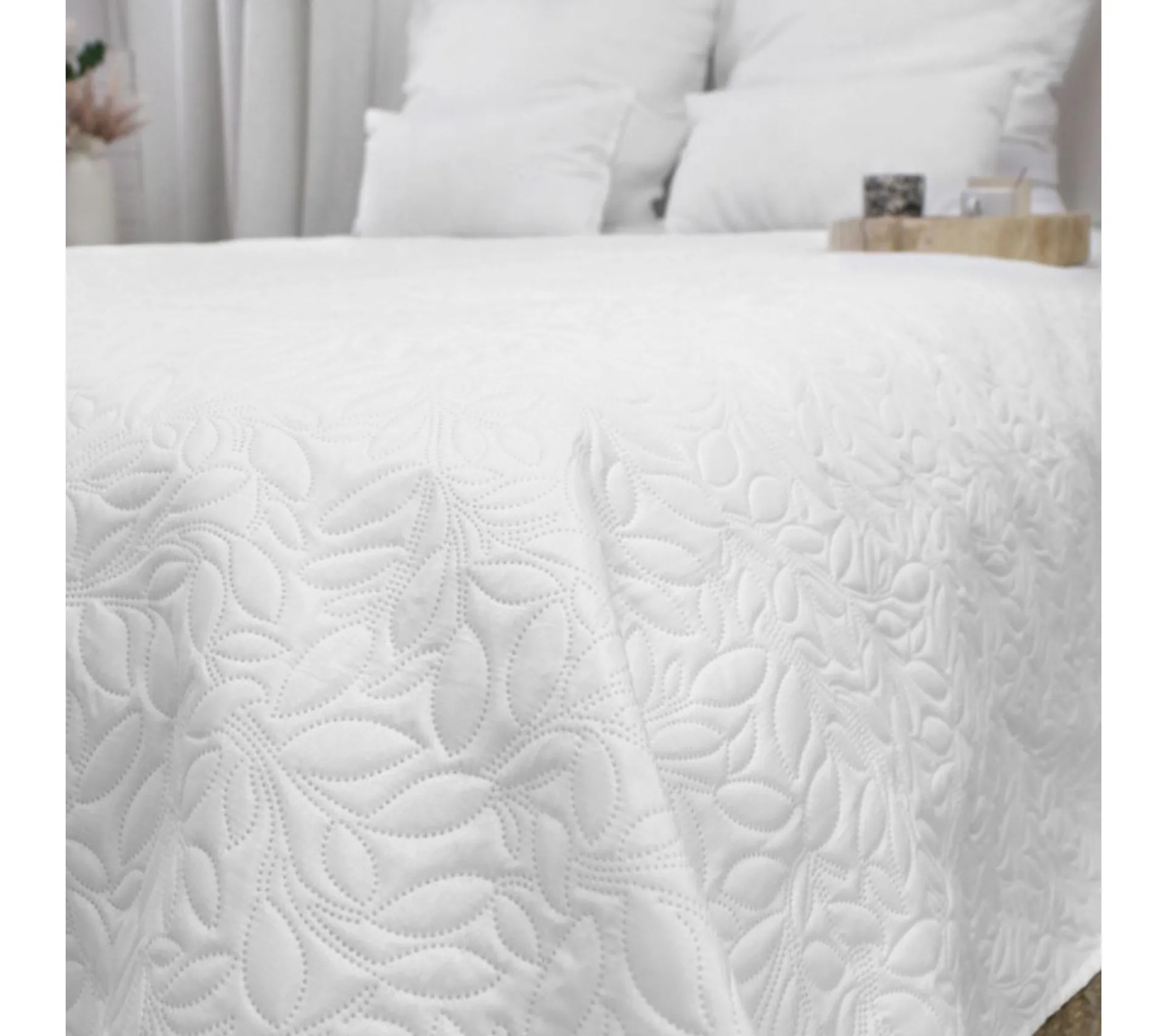 Son motif matelassé par ultrason, réalisé sans couture, crée un relief délicat et homogène qui habille instantanément le lit.