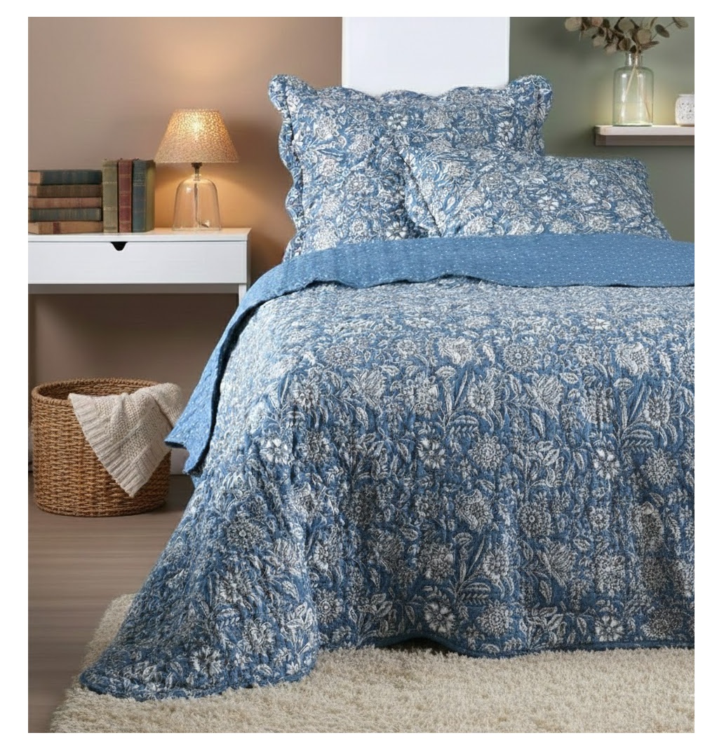 Ce superbe boutis au motif floral élégant habille votre lit avec raffinement et crée une ambiance douce et chaleureuse.