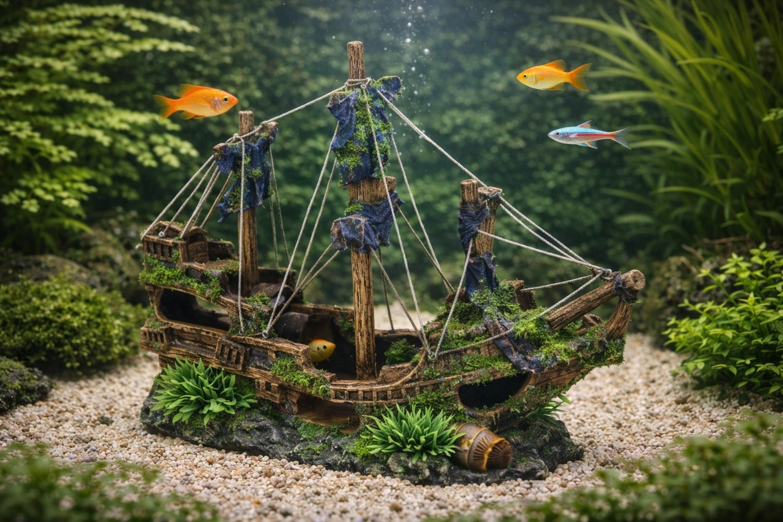 Transformez votre aquarium en véritable scène d’aventure sous-marine grâce à cette grande décoration représentant une épave de navire recouverte de mousse. Son design détaillé apporte immédiatement une ambiance immersive et naturelle dans votre bac.