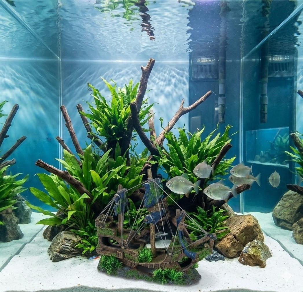 Grande décoration aquarium épave de navire Multiples passages pour les poissons Cachettes rassurantes pour petits poissons Effet mousse naturelle réaliste Crée une véritable ambiance océanique dans l’aquarium