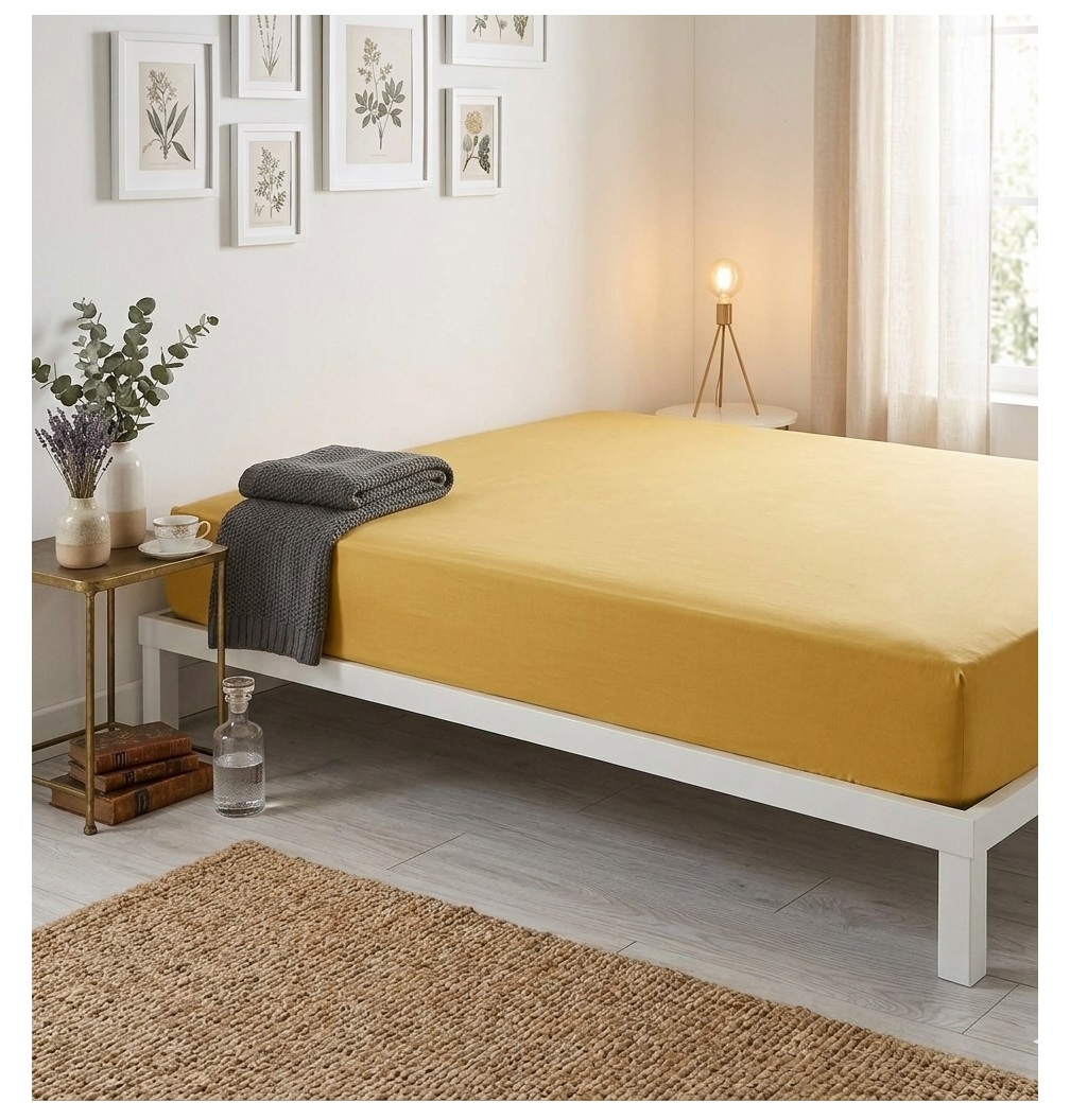 • Dimensions : 140 x 190 cm (lit 2 personnes) • Matière : microfibre 100% polyester (fine, légère et aérée) • Couleur : jaune • Bonnet : 30 cm (adapté aux matelas épais) • Certification : Oeko-Tex®