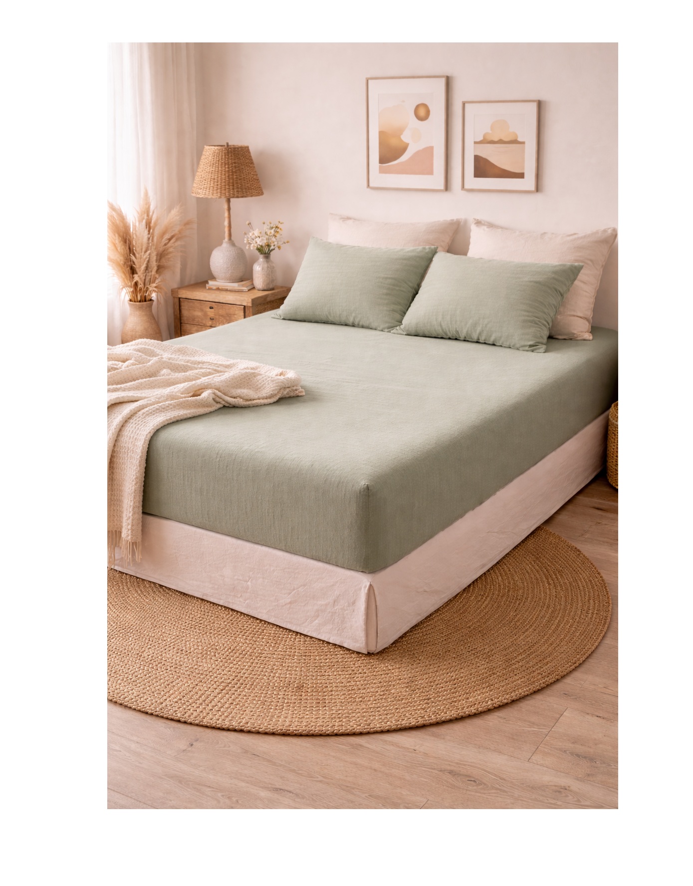 • Dimensions : 180x200 cm • Matière : 100% coton – double gaze (125 g/m²) • Bonnet extensible : jusqu’à 30 cm • Confort : matière respirante, souple et naturellement froissée • Entretien facile : lavable à 40°C (60°C pour le blanc) • Repassage inutile grâce à l’aspect gaufré naturel • Style : bohème, authentique et intemporel • Coloris : vert d'eau
