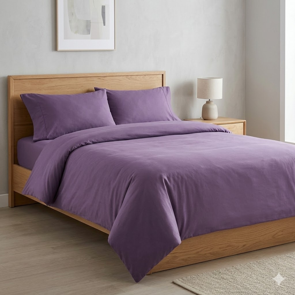 Naturellement respirante, la percale de coton est une matière saine, hypoallergénique et anti-acariens, idéale pour créer un environnement de sommeil sain et apaisant. Sa teinte violette, profonde et tendance, apporte du caractère à votre literie et sublime votre décoration intérieure.