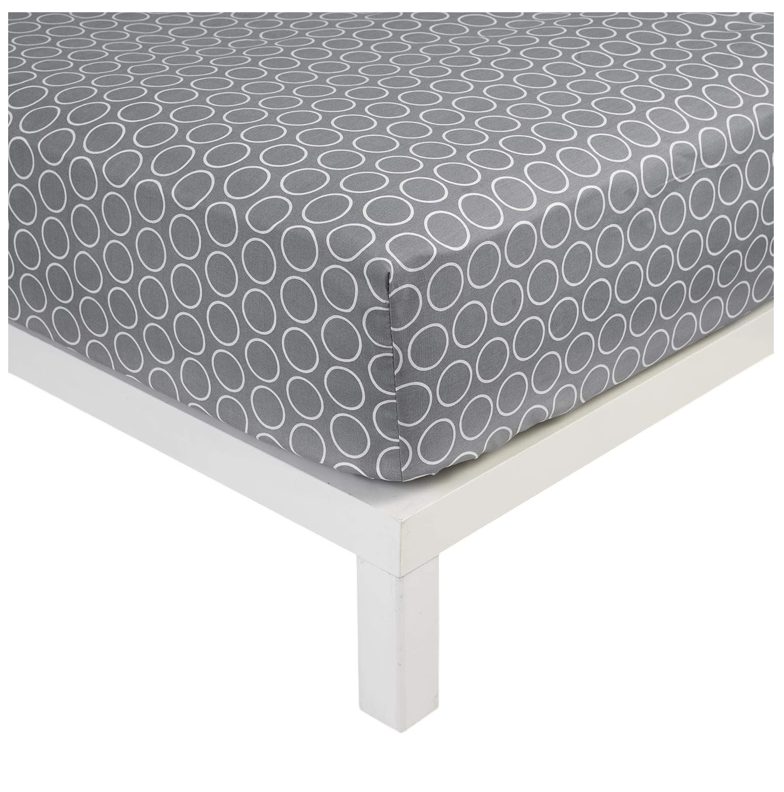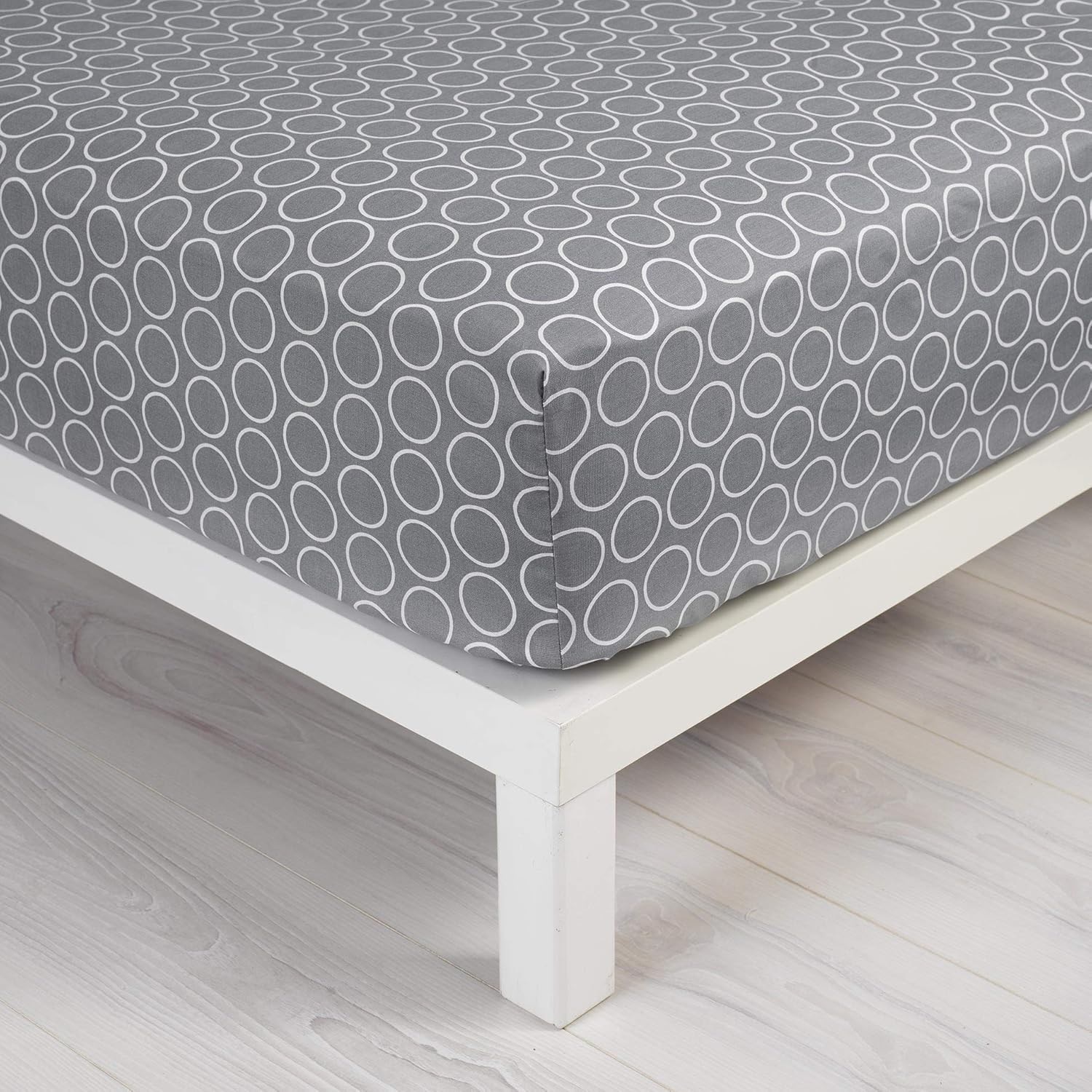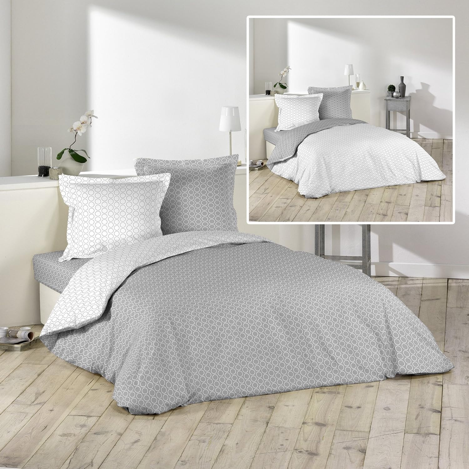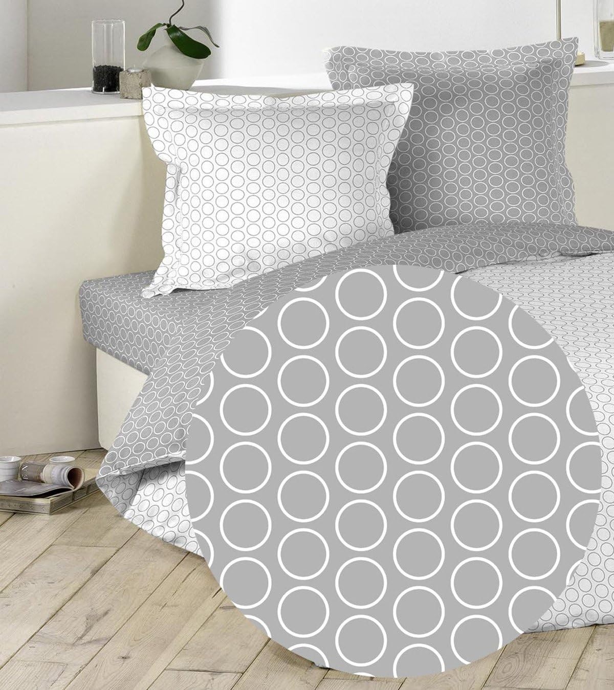 Idéal pour un matelas 2 places standard, il apporte une touche moderne grâce à son motif géométrique à cercles blancs sur fond gris.