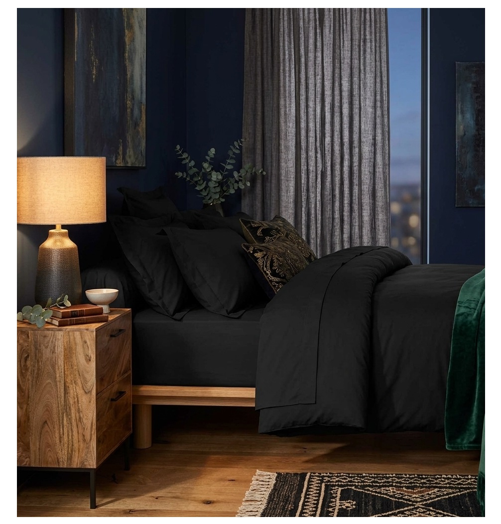 • Dimensions : 140 x 190 cm • Matière : 100% coton – 57 fils/cm² • Couleur : noir intemporel • Bonnet : 30 cm (adapté aux matelas épais) • Certification : OEKO-TEX® MADE IN GREEN