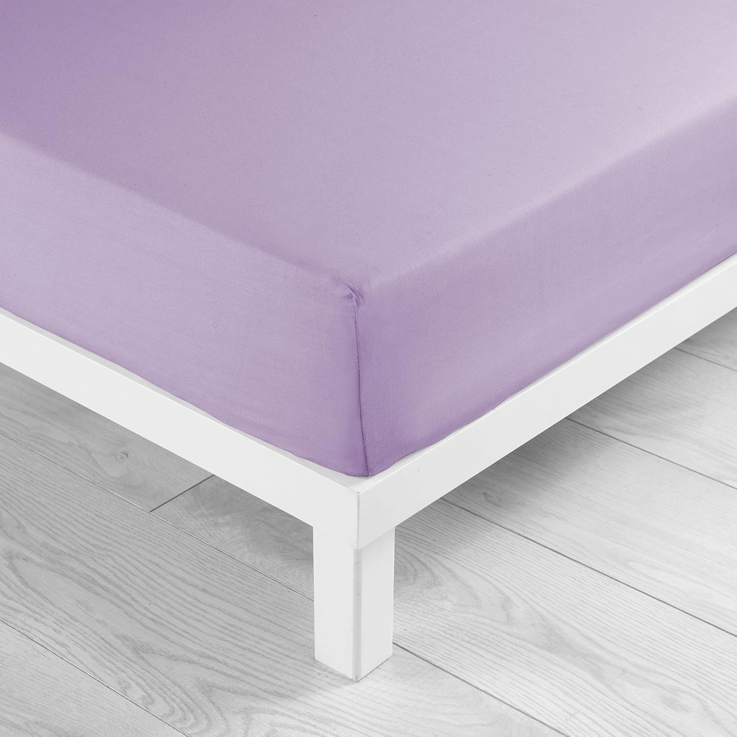 Apportez une note délicate et apaisante à votre chambre avec ce drap-housse lilas en coton 57 fils, parfait pour un lit deux personnes.