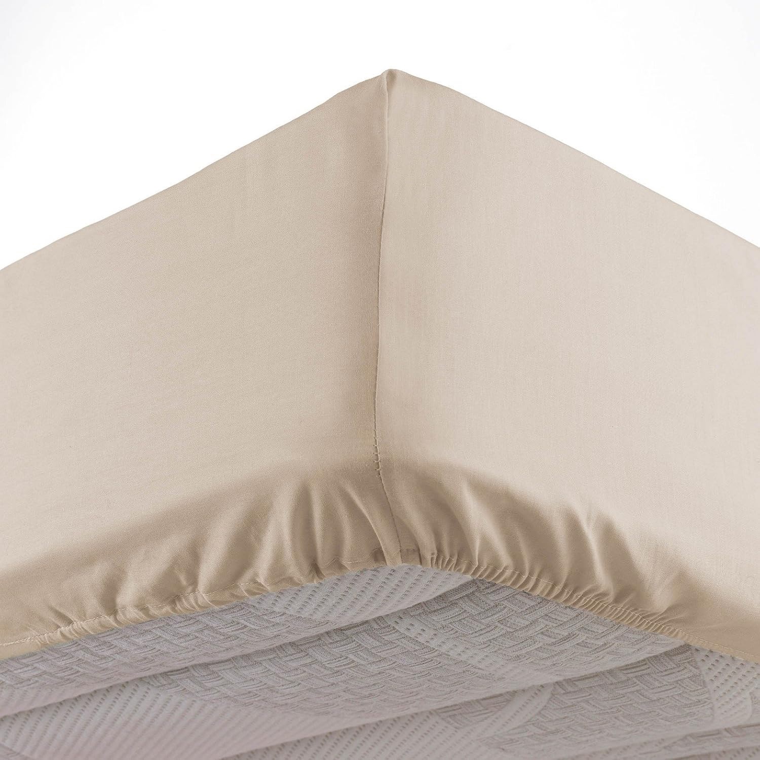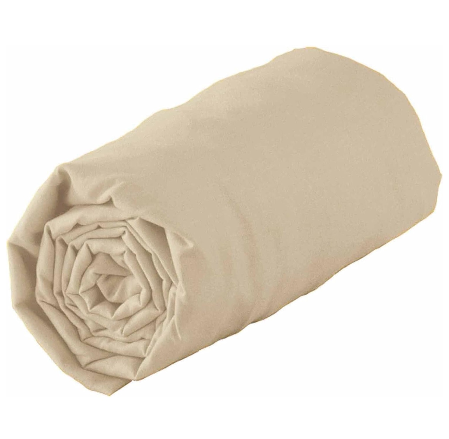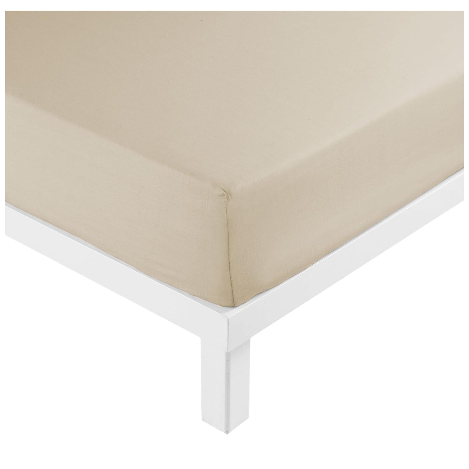 Offrez à votre lit un confort durable avec ce drap-housse sable en coton 57 fils, conçu pour les lits deux personnes grand format.