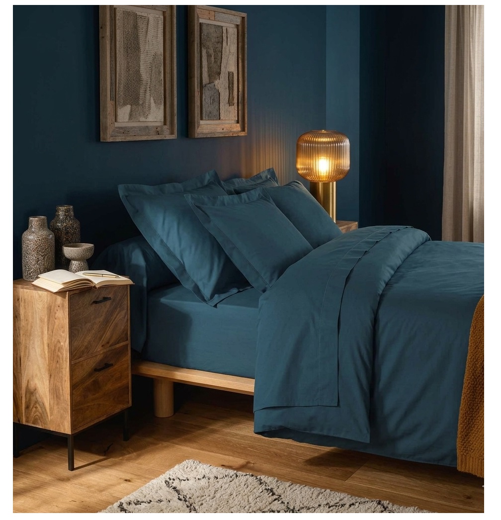 • Dimensions : 90 x 190 cm • Matière : 100% coton – 57 fils/cm² • Couleur : bleu intemporel • Bonnet : 30 cm (adapté aux matelas épais) • Certification : OEKO-TEX® MADE IN GREEN (respectueux de votre peau et de l’environnement)