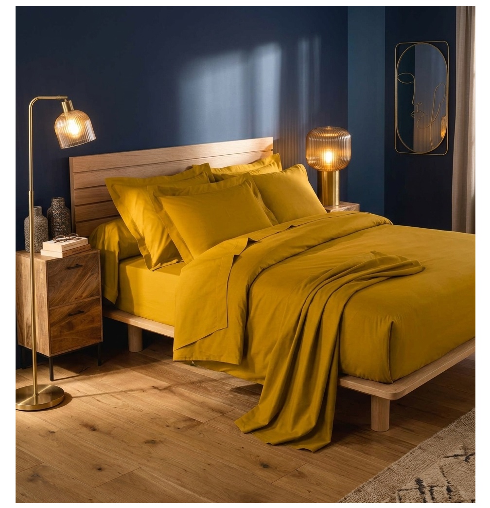 • Dimensions : 90 x 190 cm • Matière : 100% coton – 57 fils/cm² • Couleur : curry intemporel • Bonnet : 30 cm (adapté aux matelas épais) • Certification : OEKO-TEX® MADE IN GREEN (respectueux de votre peau et de l’environnement)