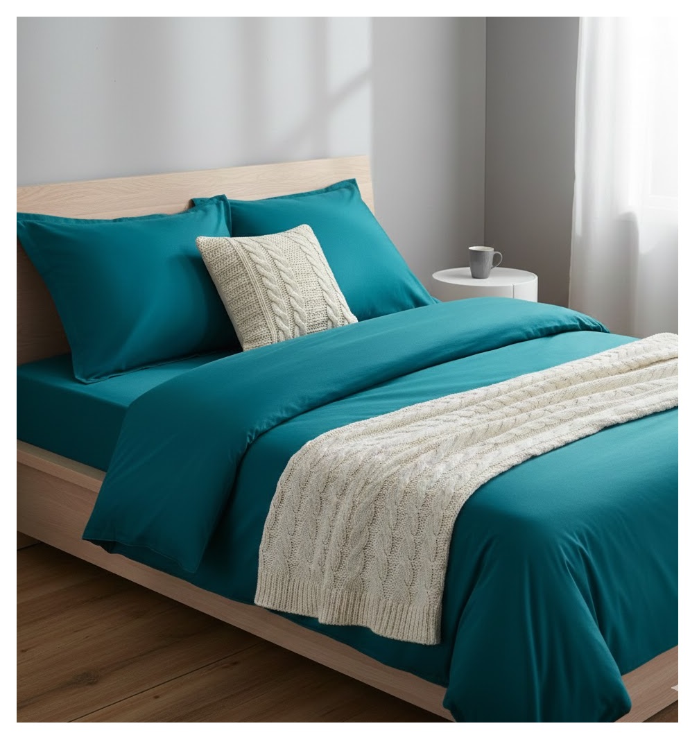 Confectionné en 100% coton tissé 57 fils/cm², il offre un parfait équilibre entre douceur, résistance et confort au quotidien.