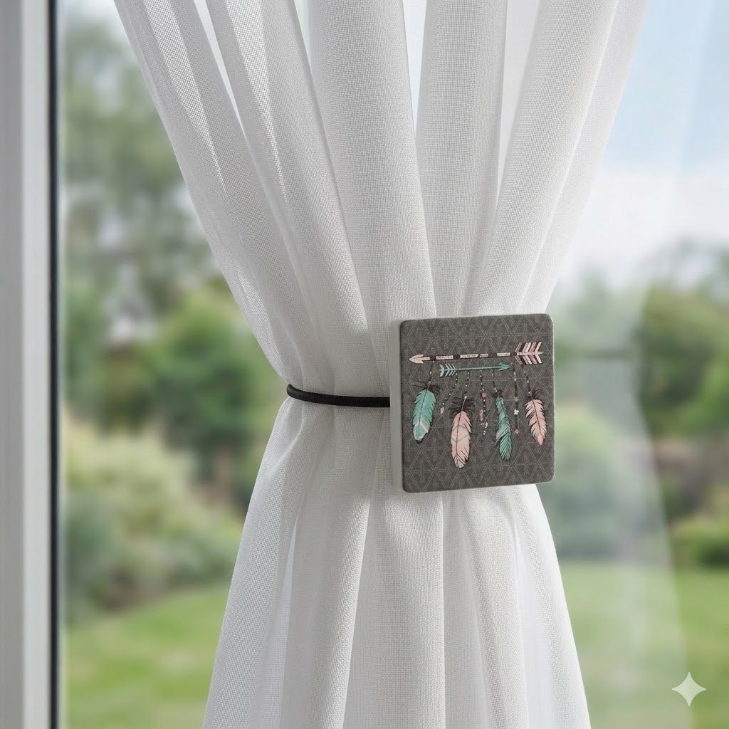Apportez une touche bohème et moderne à votre intérieur avec cette embrasse aimantée au joli motif plumes. À la fois pratique et esthétique, elle permet de maintenir facilement vos voilages ou rideaux en place sans les nouer ni percer vos murs. Son système aimanté discret assure une fixation rapide et efficace pour structurer la lumière et sublimer vos fenêtres.