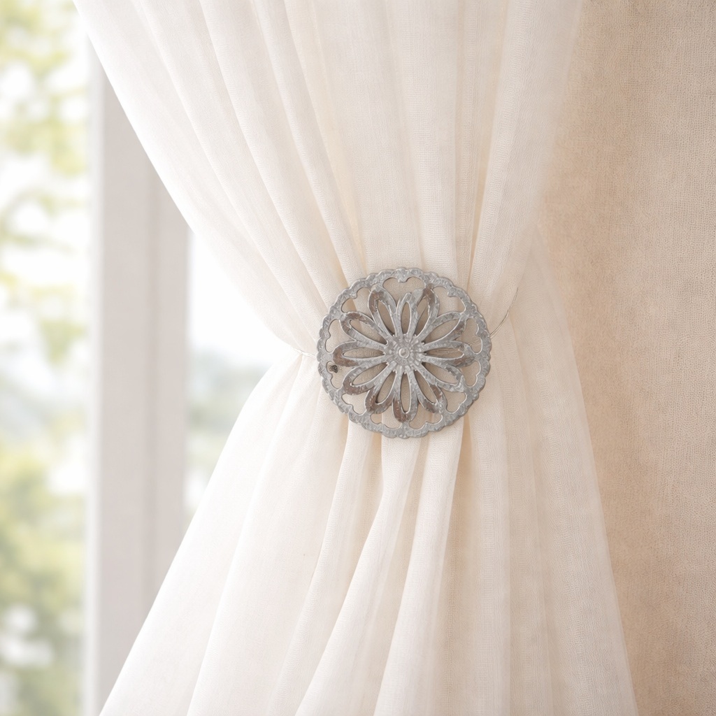 Apportez une touche d’élégance et de raffinement à votre décoration avec cette embrasse aimantée en métal patiné. Idéale pour maintenir vos voilages ou rideaux ouverts, elle s’installe facilement sans perçage grâce à son système magnétique pratique et discret. Son design travaillé et sa finition patinée apportent du charme et du caractère à votre intérieur, tout en laissant entrer la lumière naturellement.