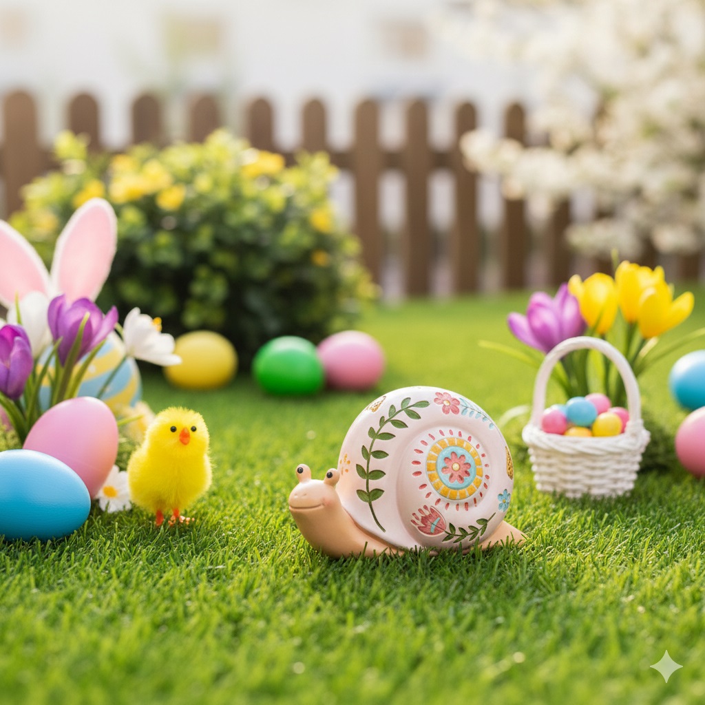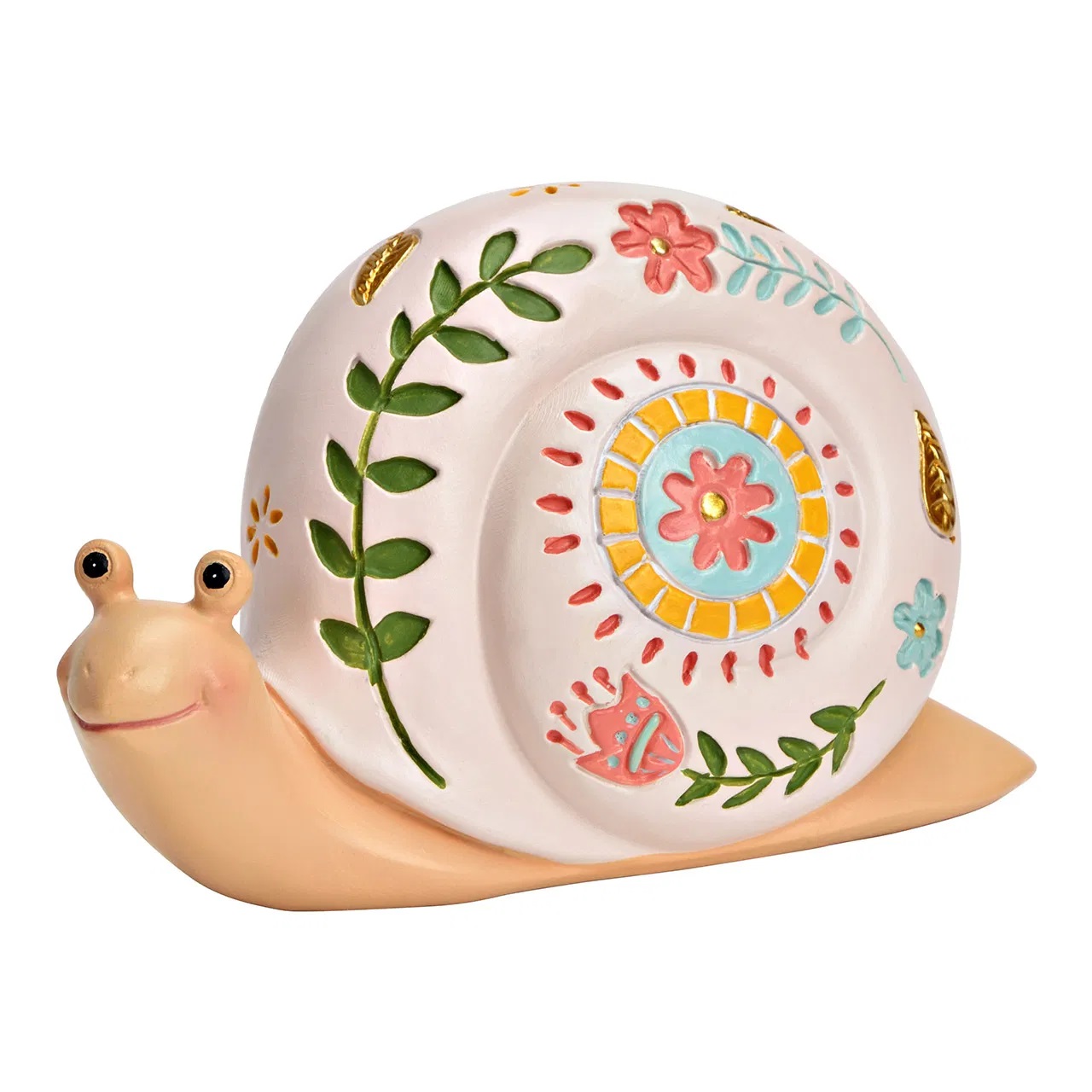 Apportez une touche de douceur et de fantaisie à votre décoration avec cet adorable escargot décoratif en poly. Son coquillage rose est joliment orné de motifs floraux colorés et de détails en relief, pour un rendu délicat et joyeux qui évoque l’esprit jardin et printemps.